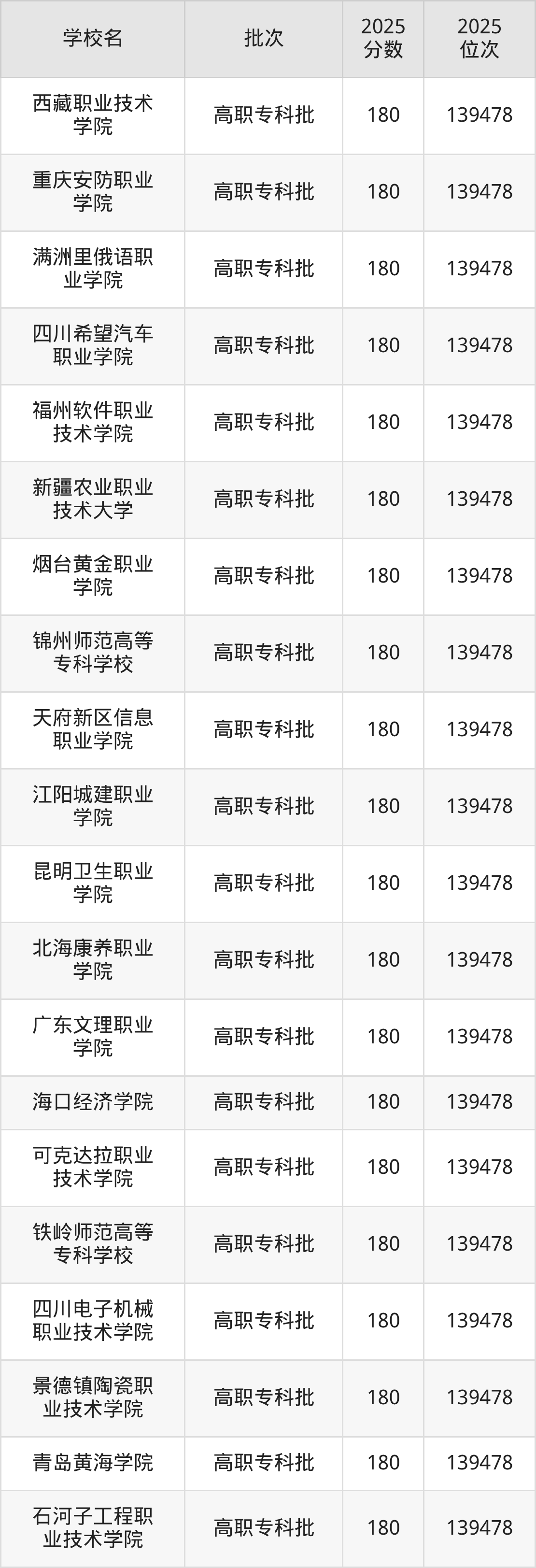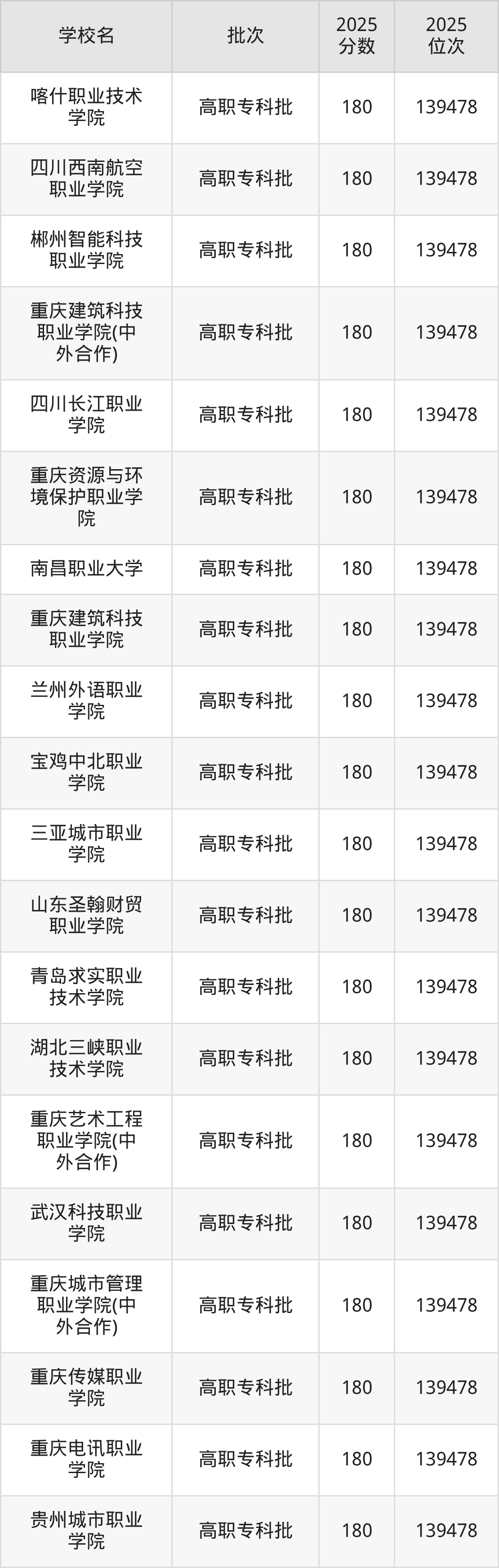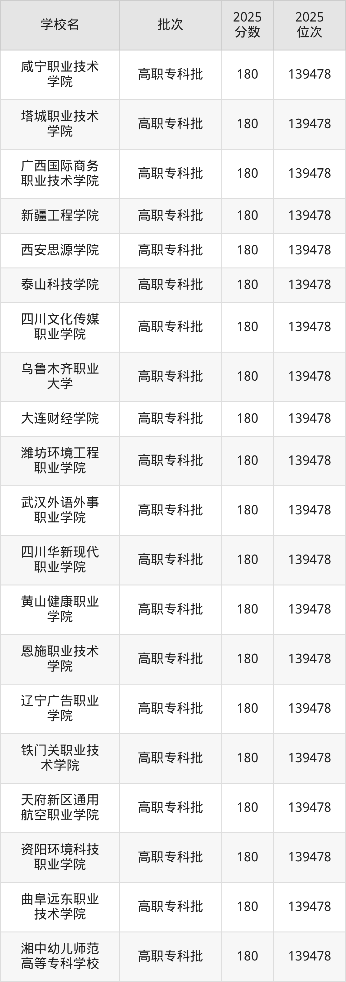 这些都是2026年高考物理类139151名~139170名考生可以报考的大学,更多学校名单如下表所示: