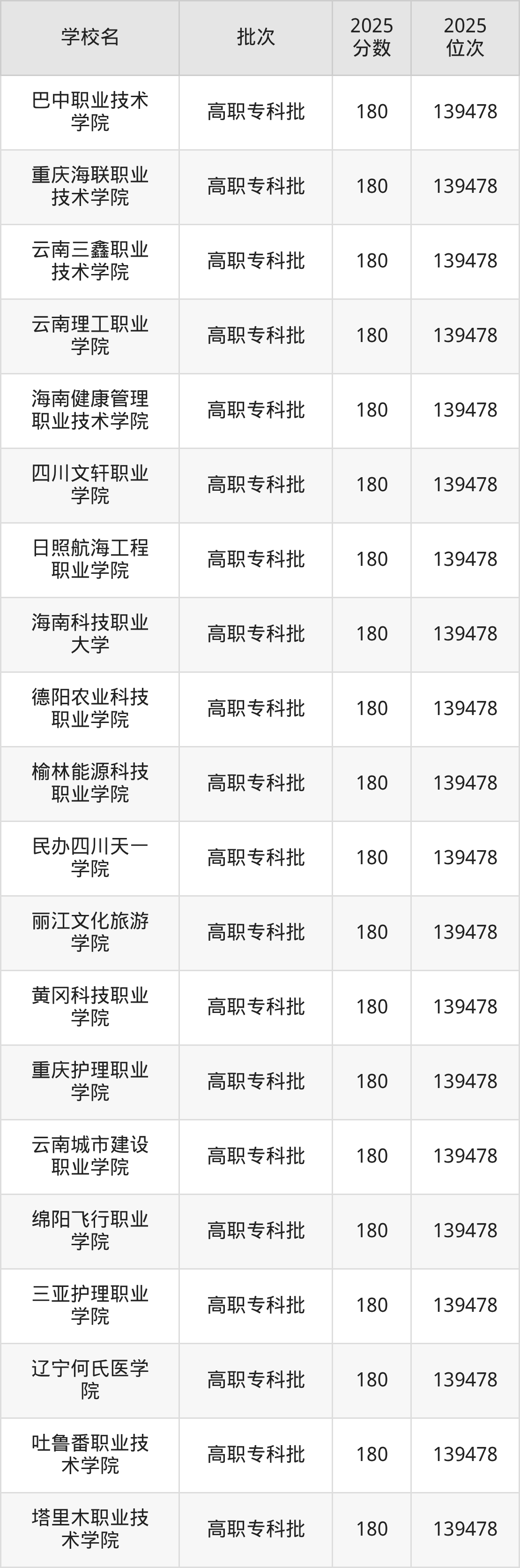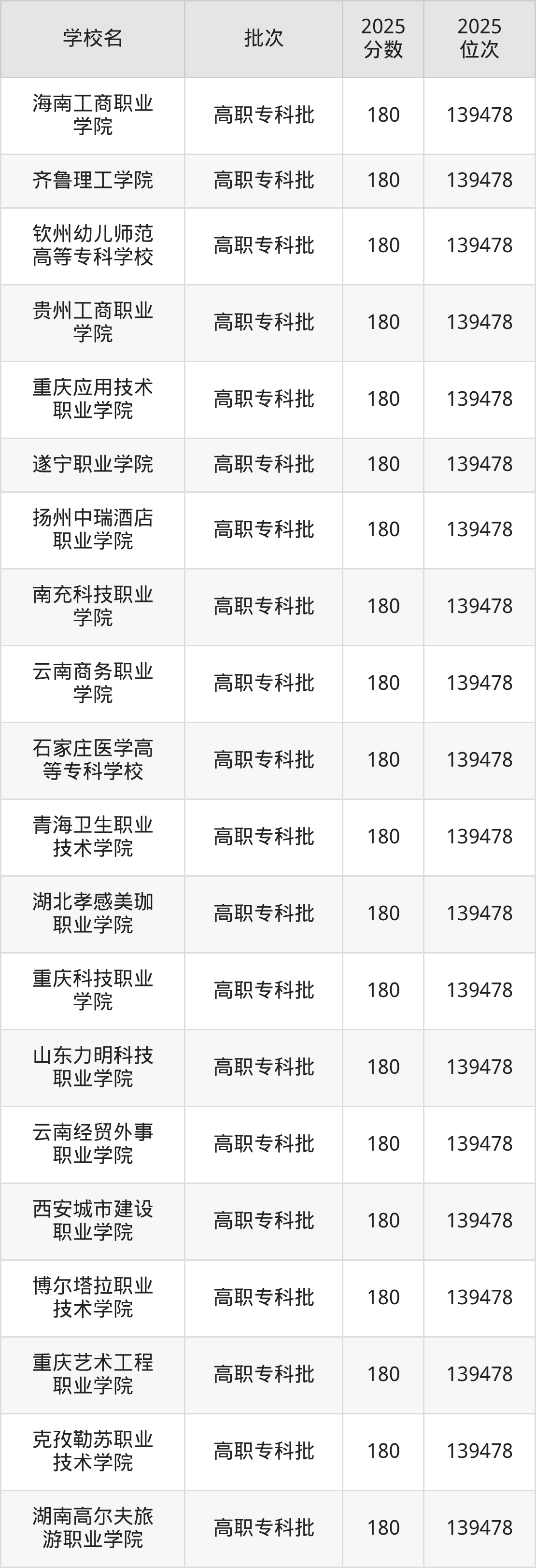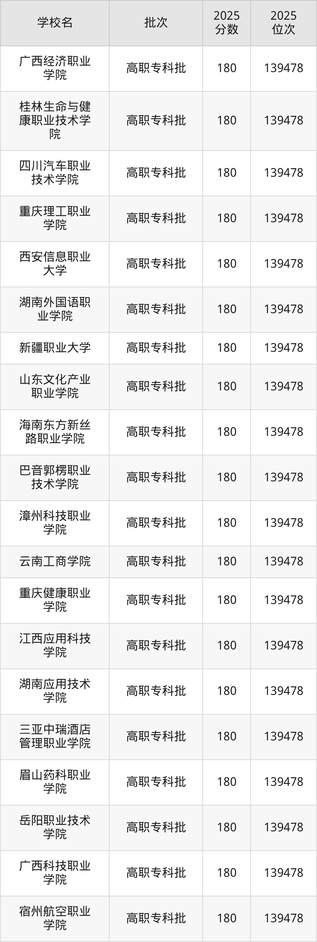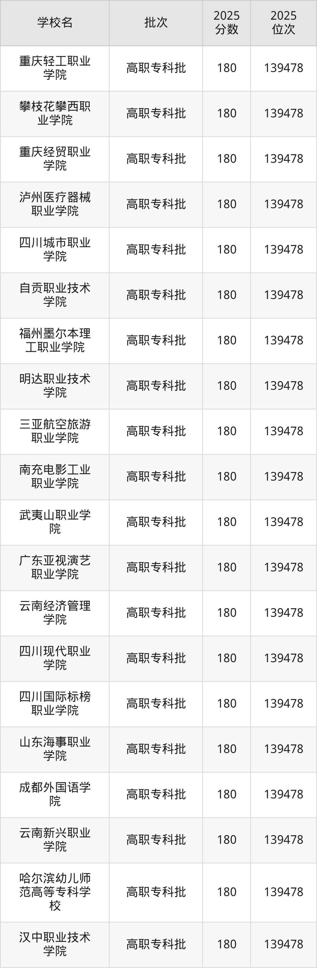 这些都是2026年高考物理类139151名~139170名考生可以报考的大学,更多学校名单如下表所示: