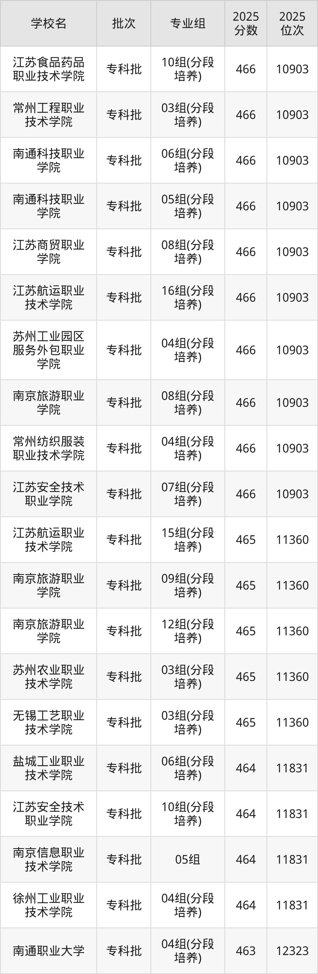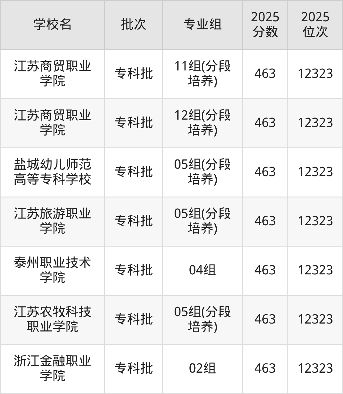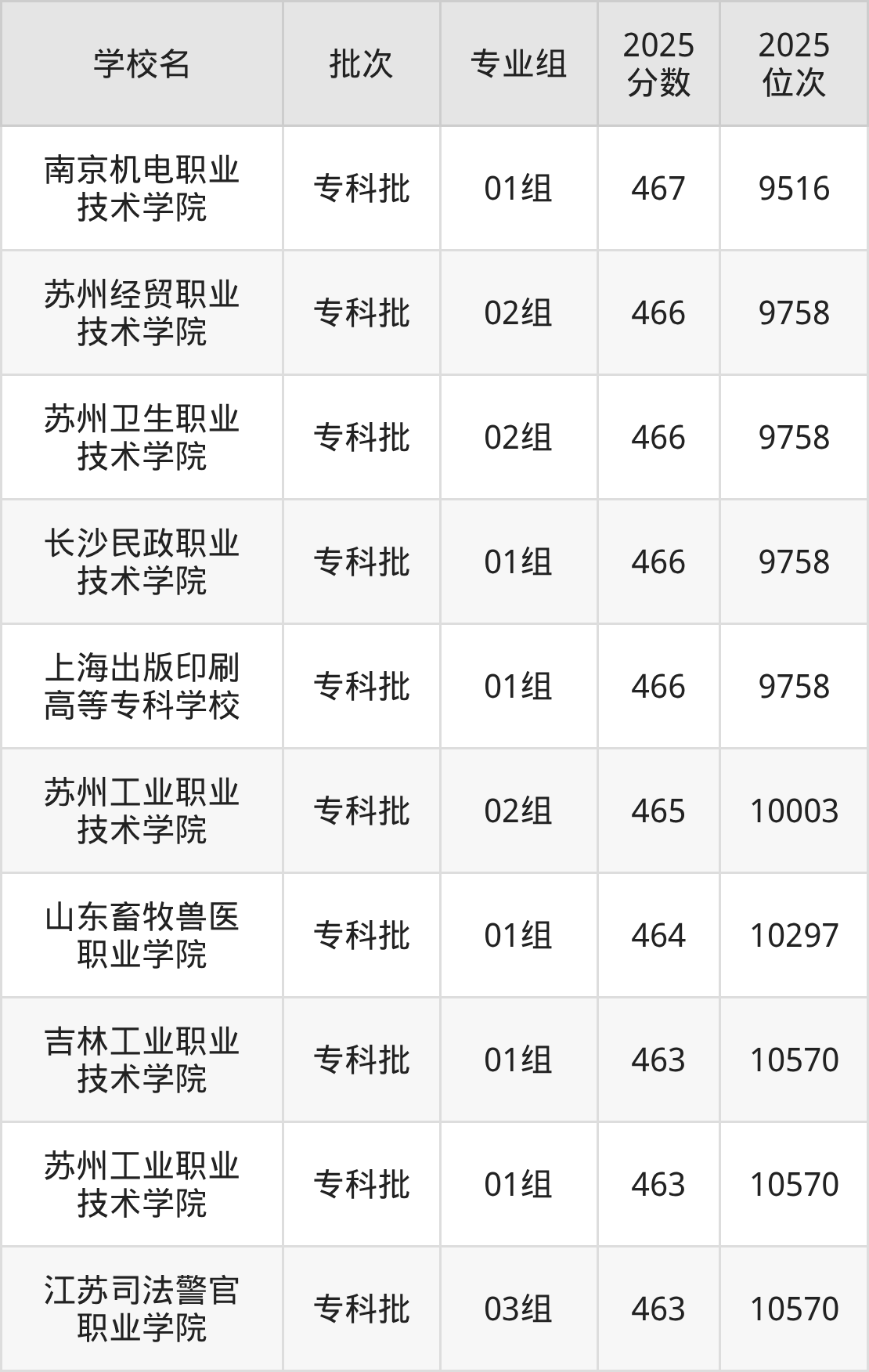 2025年江苏高考历史类464分(10004名~10297名)能上的大学有山东畜牧兽医职业学院01组。