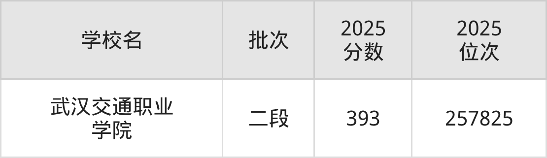 2025年浙江高考393分(257571名~258075名)能上的大学有武汉交通职业学院。