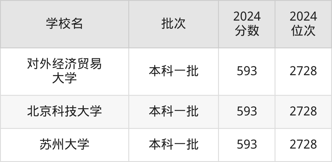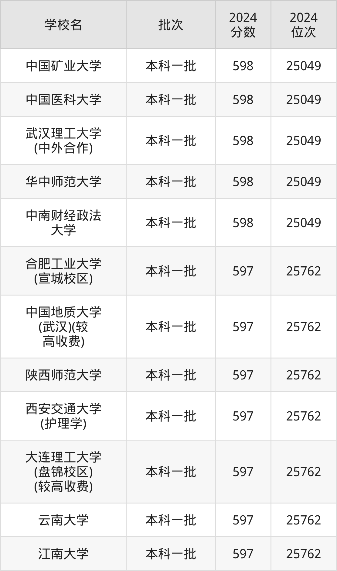 这些都是2025年高考理科25050名~25762名考生可以报考的大学,更多学校名单如下表所示: