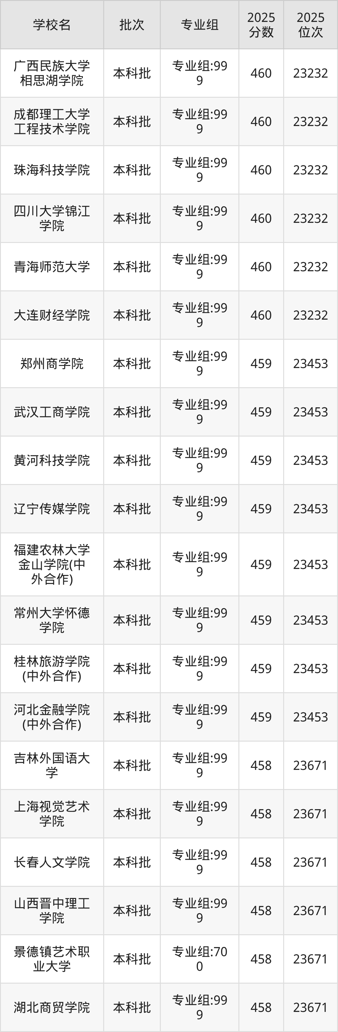 这些都是2026年高考历史类23672名~23893名考生可以报考的大学,更多学校名单如下表所示: