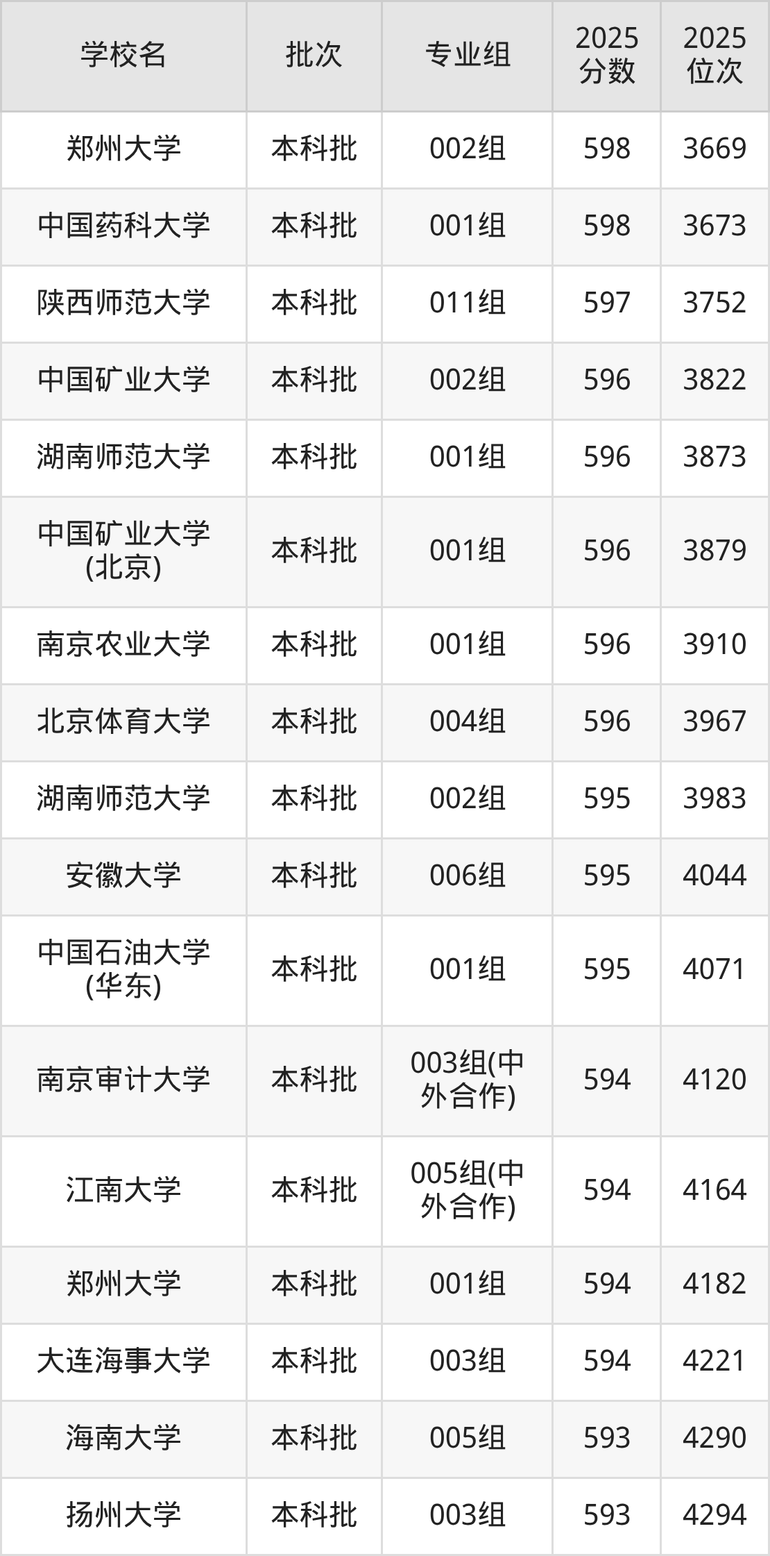 另外录取位次低于该区间(较稳妥)的有中国矿业大学002组(3822名)、湖南师范大学001组(3873名)等;录取位次高于该区间(可冲)的有中国药科大学001组(3673名)、郑州大学002组(3669名)等。