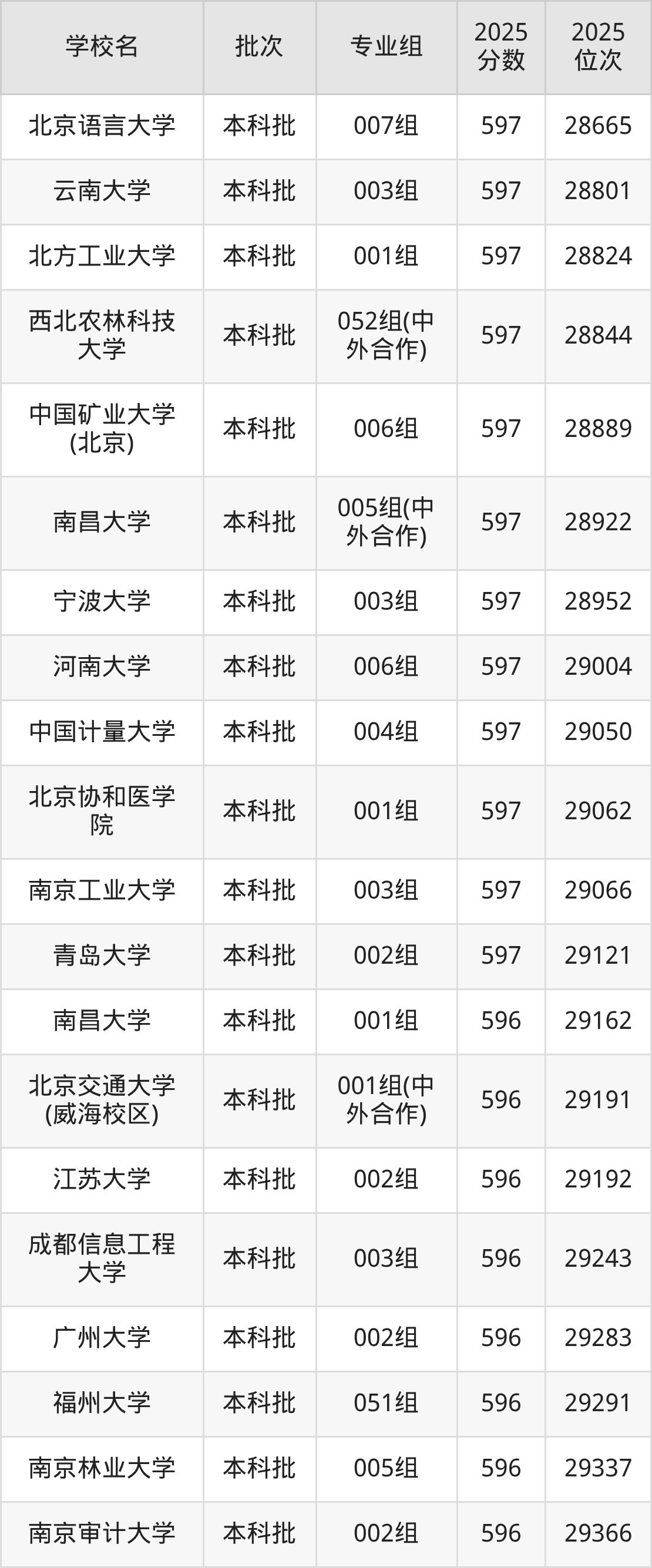 另外录取位次低于该区间(较稳妥)的有南昌大学001组(29162名)、北京交通大学(威海校区)001组(中外合作)(29191名)等;录取位次高于该区间(可冲)的有长安大学005组(28407名)、浙江工业大学004组(28373名)等。
