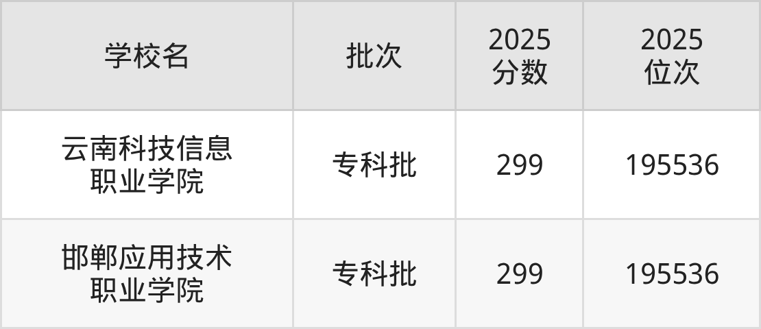 这些都是2026年高考历史类195537名~196083名考生可以报考的大学,更多学校名单如下表所示: