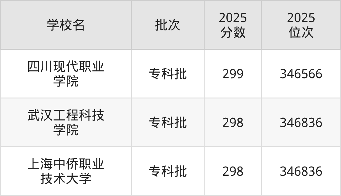2025年河北高考物理类298分(346567名~346836名)能上的大学有上海中侨职业技术大学、武汉工程科技学院。