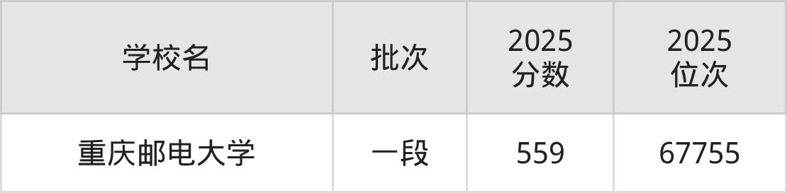 2025年山东高考559分(67398名~68893名)能上的大学有重庆邮电大学。
