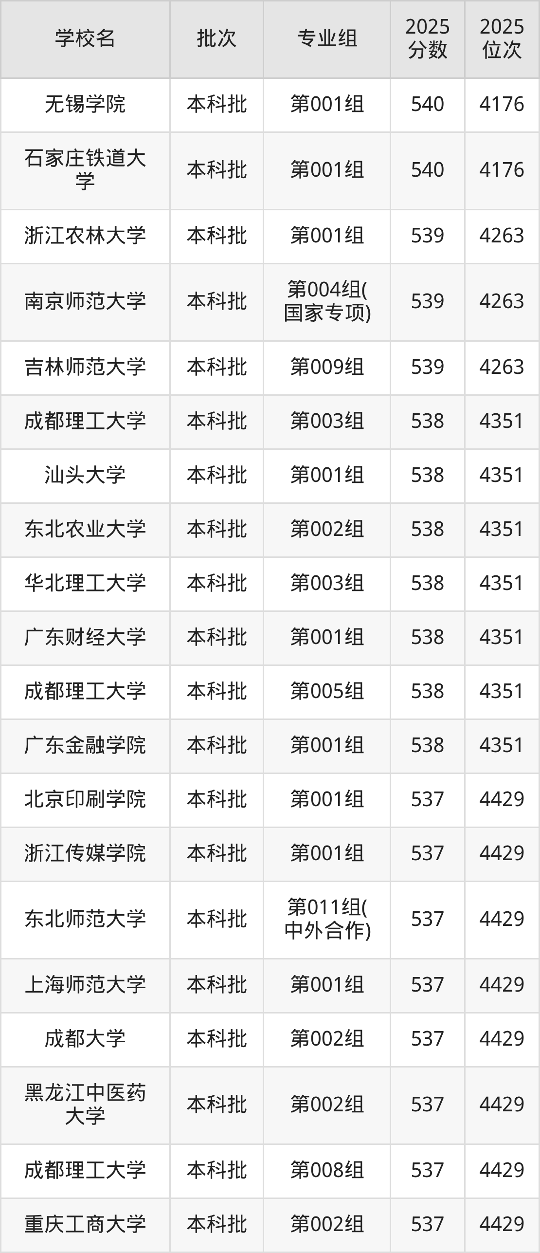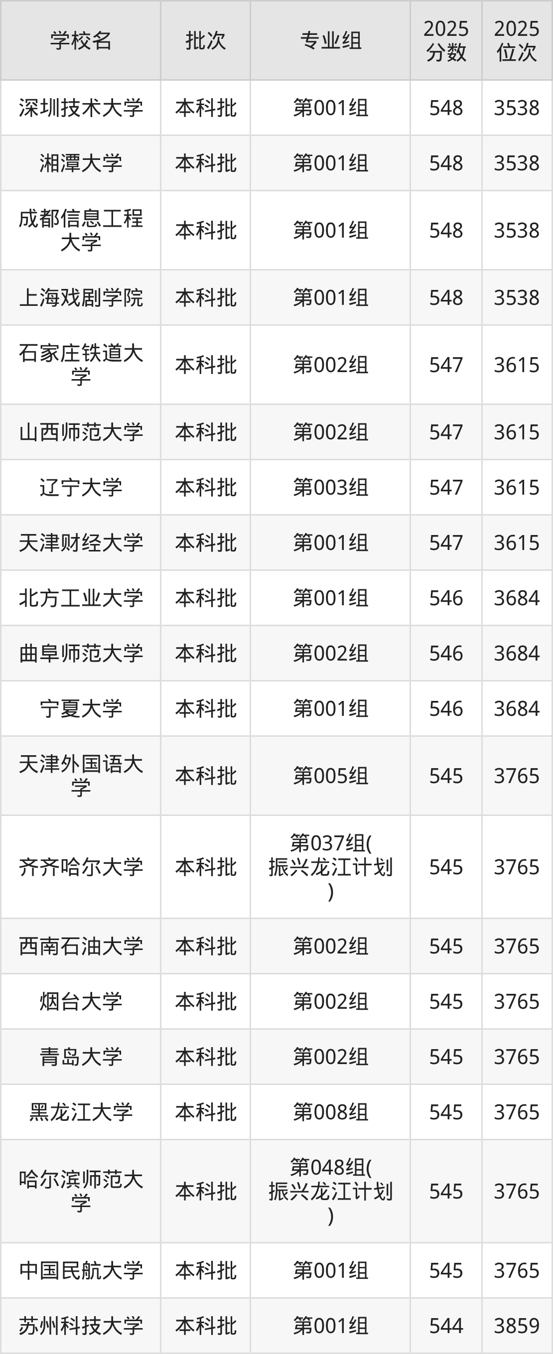 二、黑龙江541分位次排名能上的大学