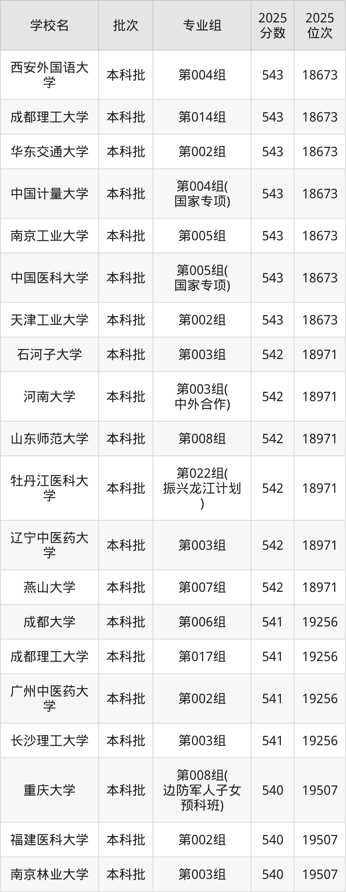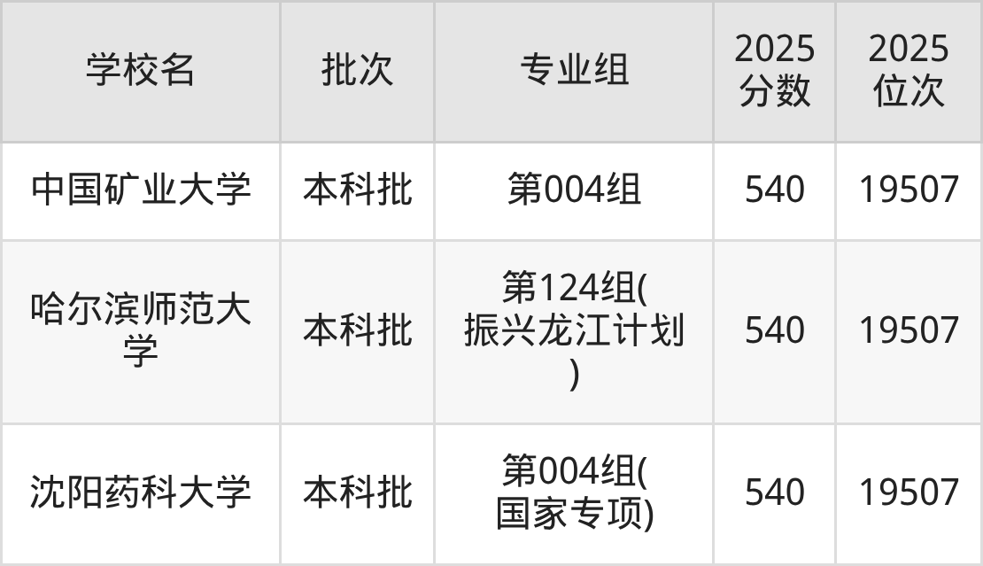 2025年黑龙江高考物理类541分(18972名~19256名)能上的大学有长沙理工大学第003组、广州中医药大学第002组、成都理工大学第017组、成都大学第006组。