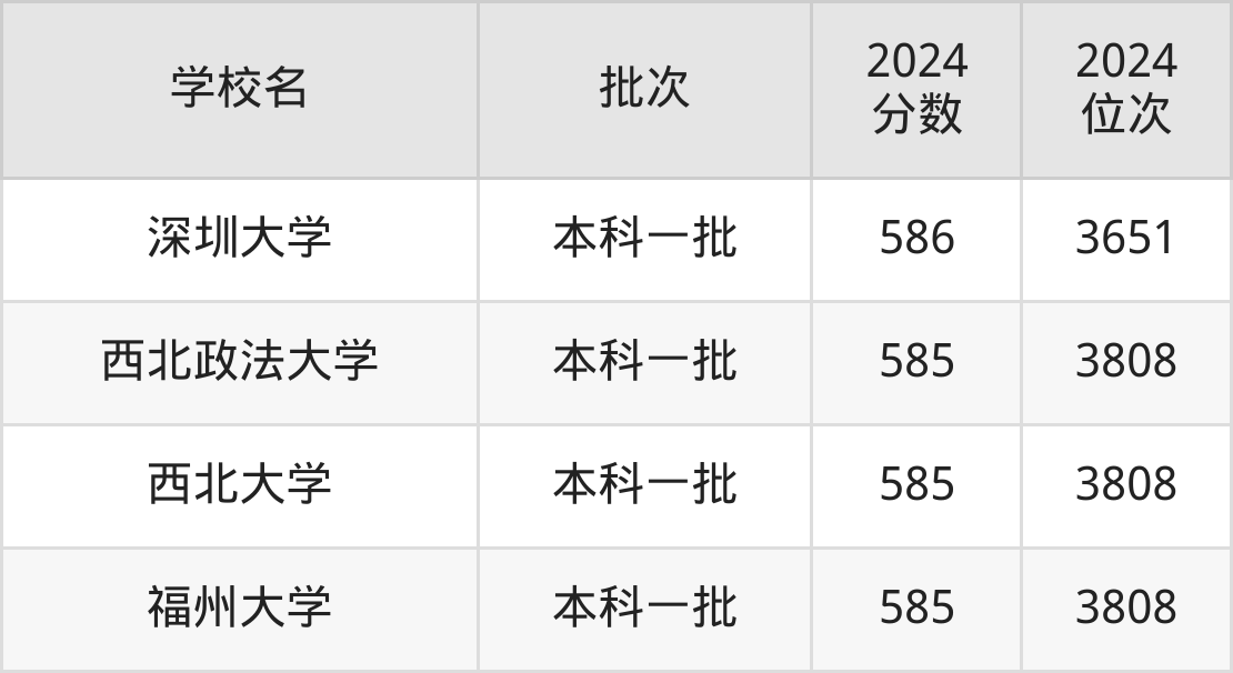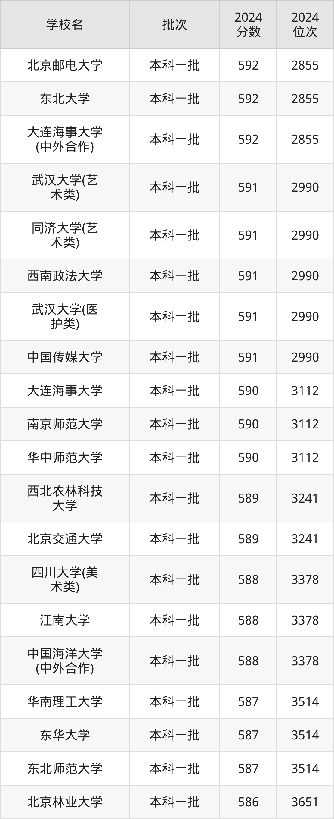 这些都是2025年高考文科3242名~3378名考生可以报考的大学,更多学校名单如下表所示: