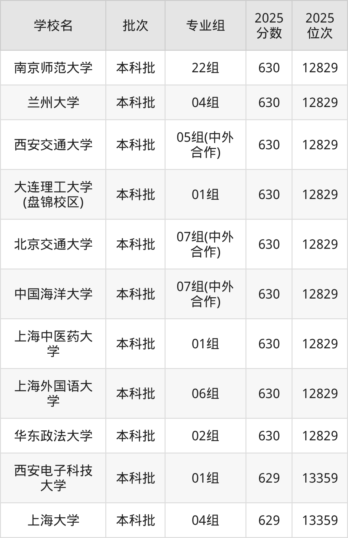 2025年江苏高考物理类629分(12830名~13359名)能上的大学有上海大学04组、西安电子科技大学01组。