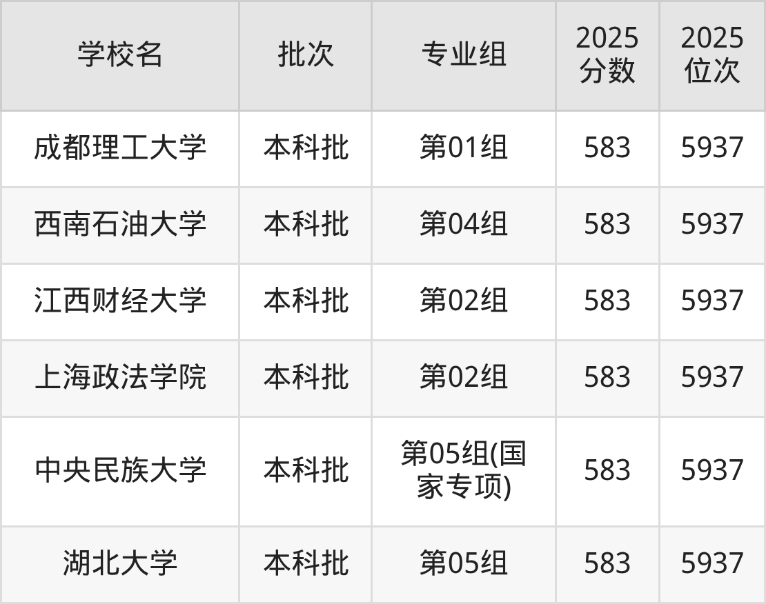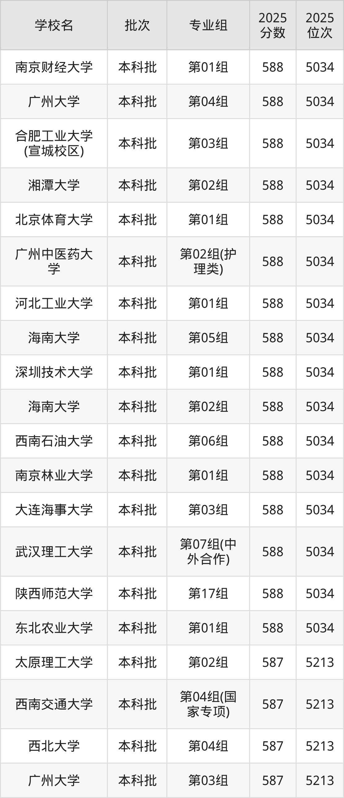 这些都是2026年高考历史类5392名~5552名考生可以报考的大学,更多学校名单如下表所示: