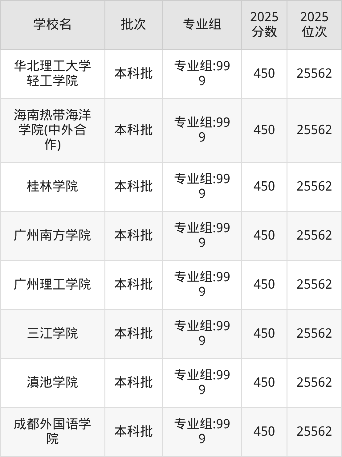 这些都是2026年高考历史类25563名~25789名考生可以报考的大学,更多学校名单如下表所示: