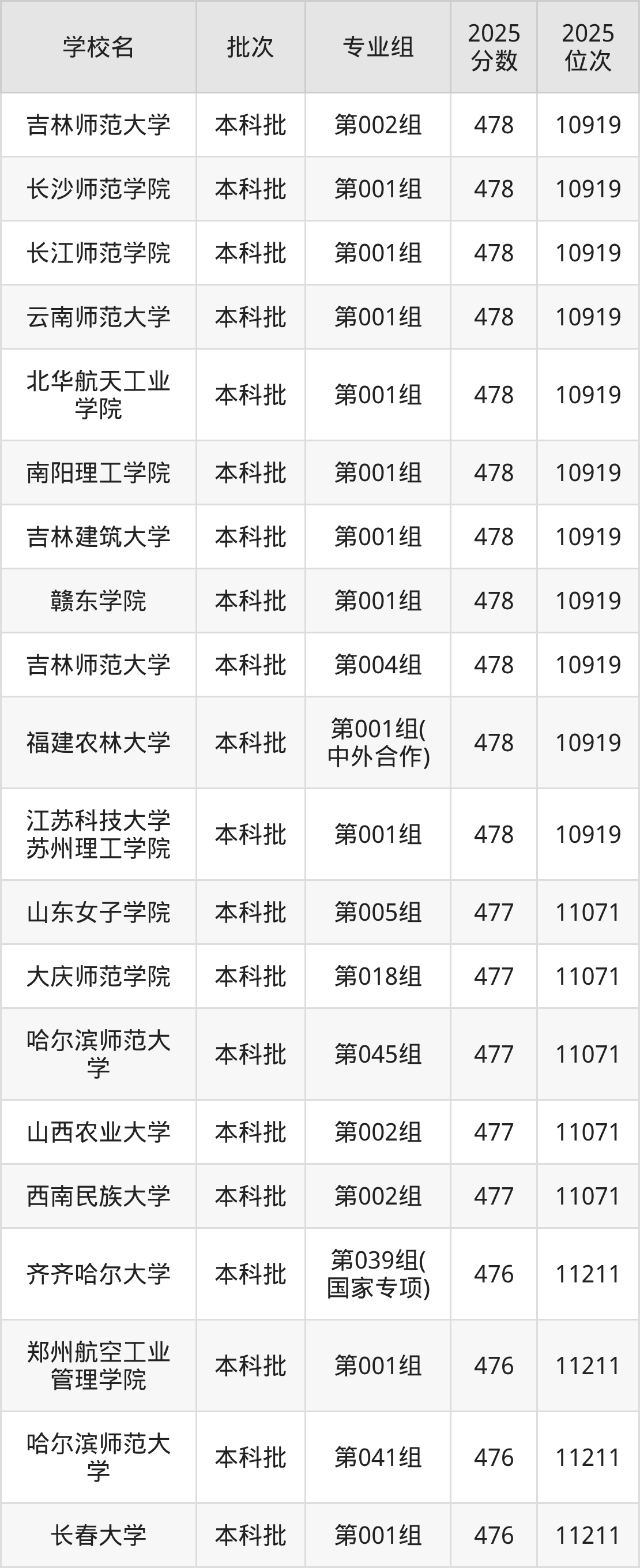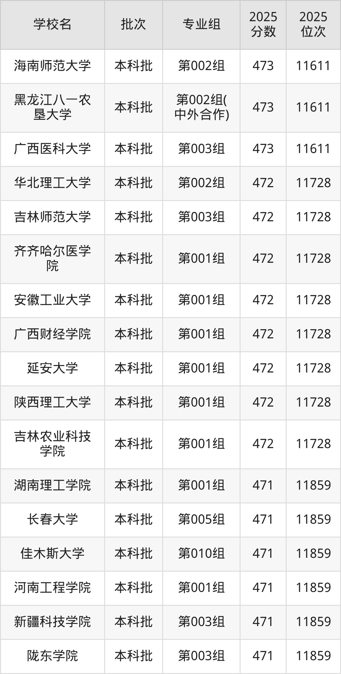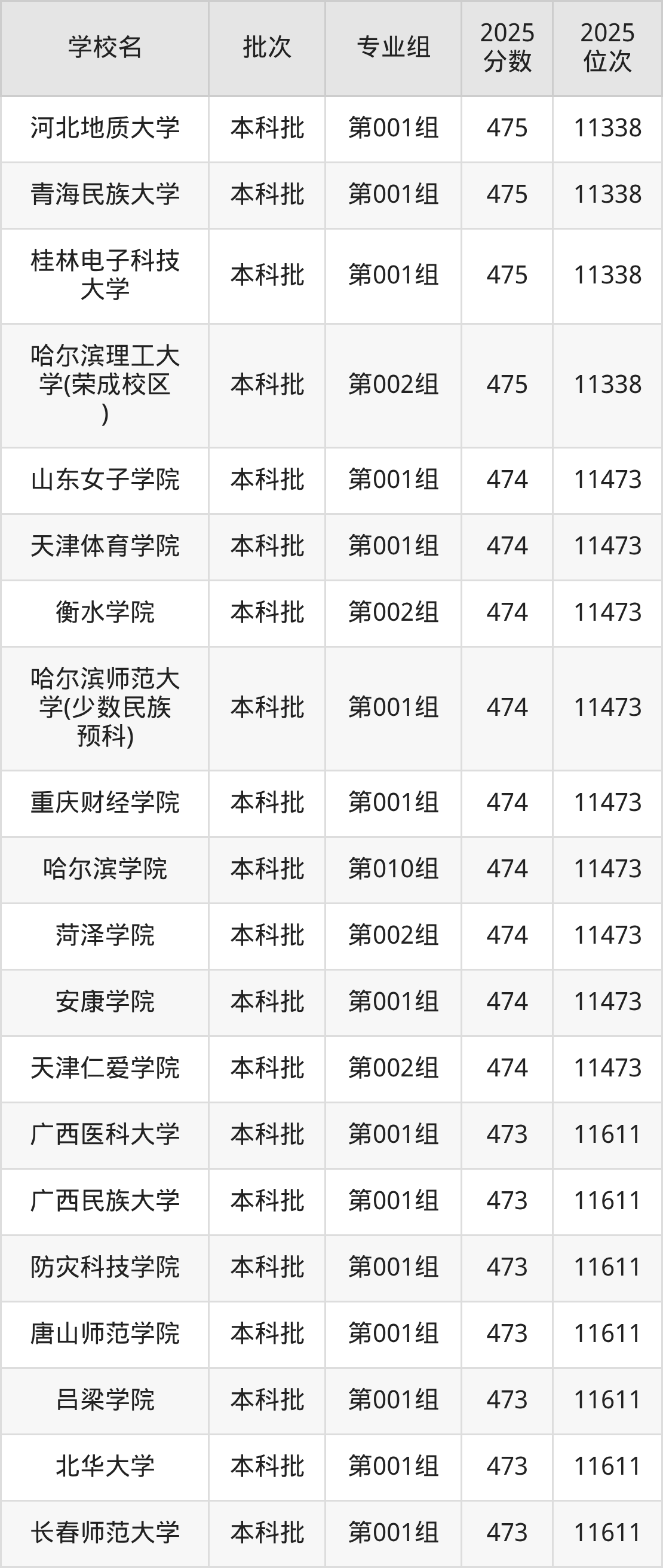 这些都是2026年高考历史类11339名~11473名考生可以报考的大学,更多学校名单如下表所示: