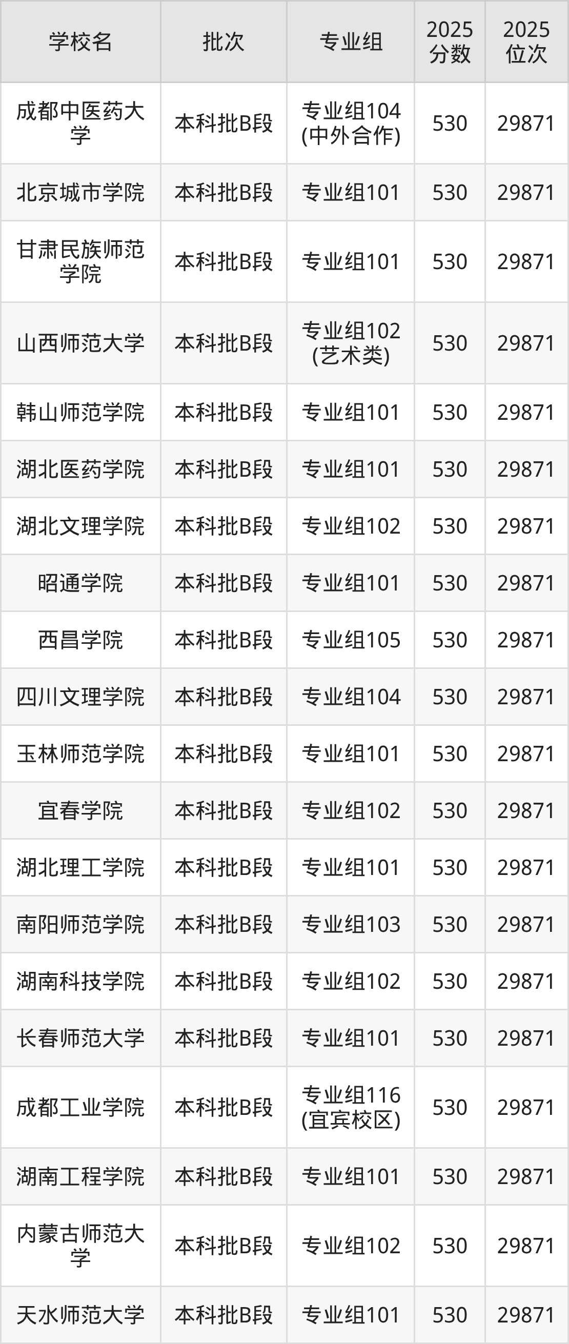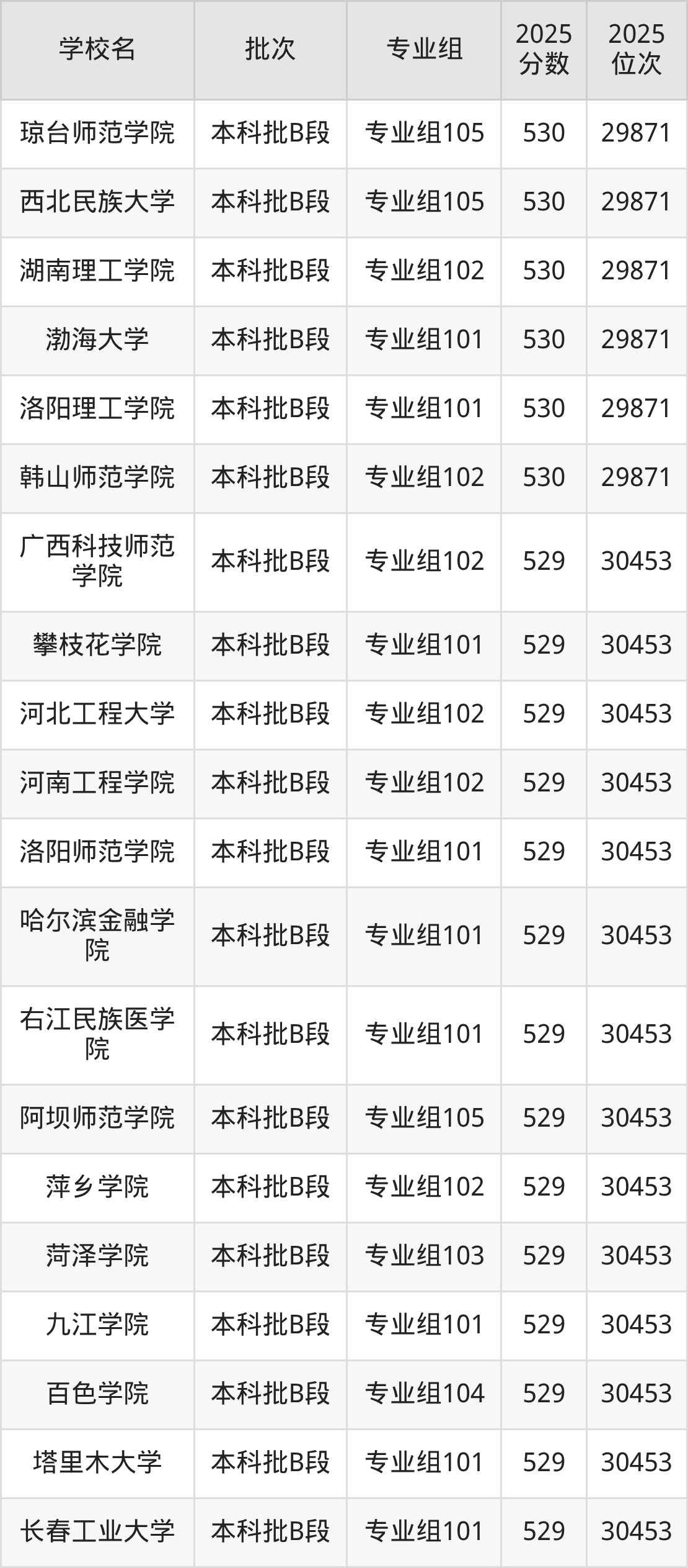 这些都是2026年高考历史类29872名~30453名考生可以报考的大学,更多学校名单如下表所示: