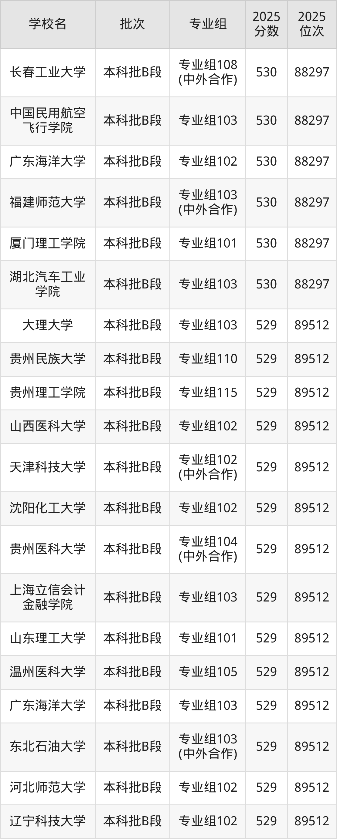这些都是2026年高考物理类88298名~89512名考生可以报考的大学,更多学校名单如下表所示: