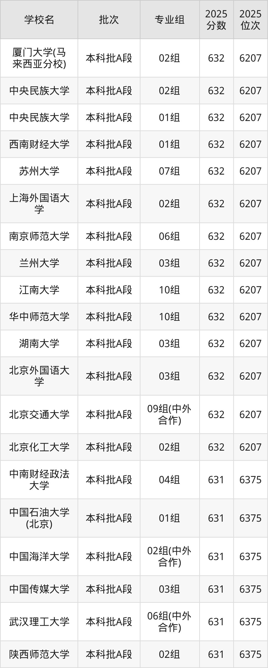这些都是2026年高考6565名~6772名考生可以报考的大学,更多学校名单如下表所示:
