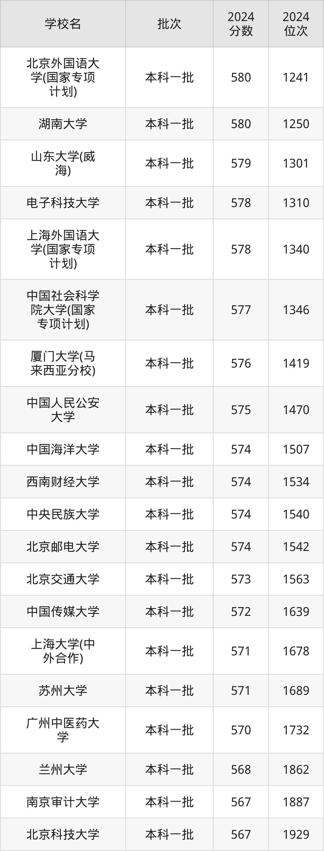 由于高考录取分数线历年波动较大,因此本文以该分数对应的位次排名为大家整理能上的大学名单。