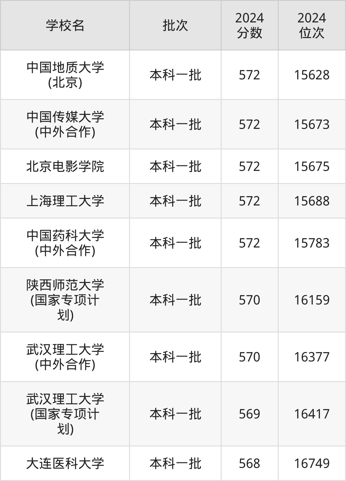 另外录取位次低于该区间(较稳妥)的有武汉理工大学(国家专项计划)(16417名)、大连医科大学(16749名)等;录取位次高于该区间(可冲)的有中国药科大学(中外合作)(15783名)、上海理工大学(15688名)等。
