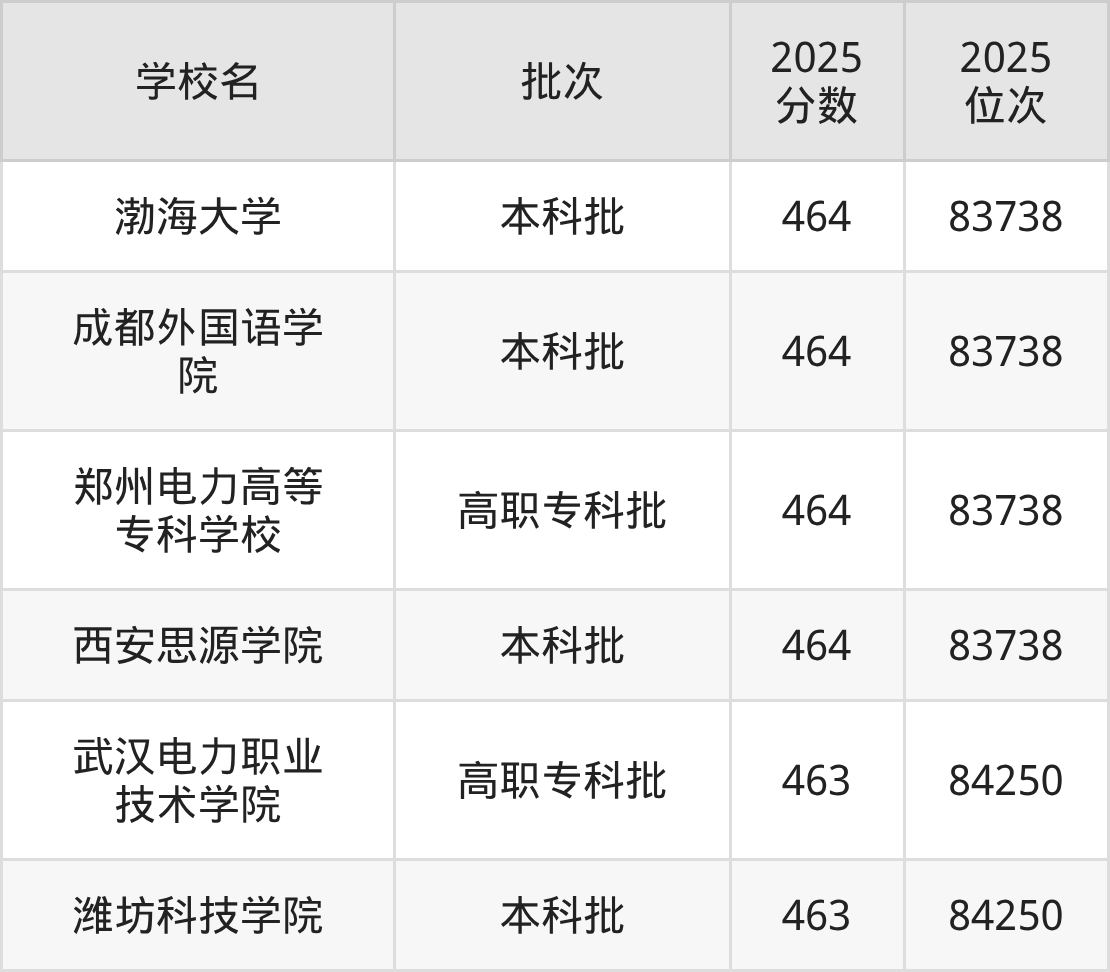 这些都是2026年高考物理类83739名~84250名考生可以报考的大学,更多学校名单如下表所示: