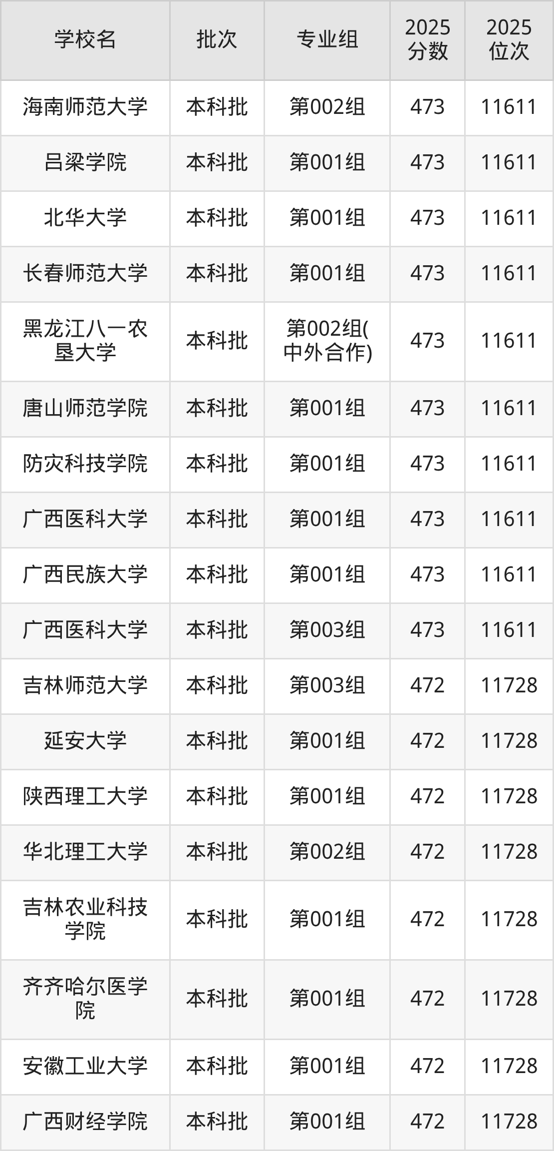 这些都是2026年高考历史类11212名~11338名考生可以报考的大学,更多学校名单如下表所示: