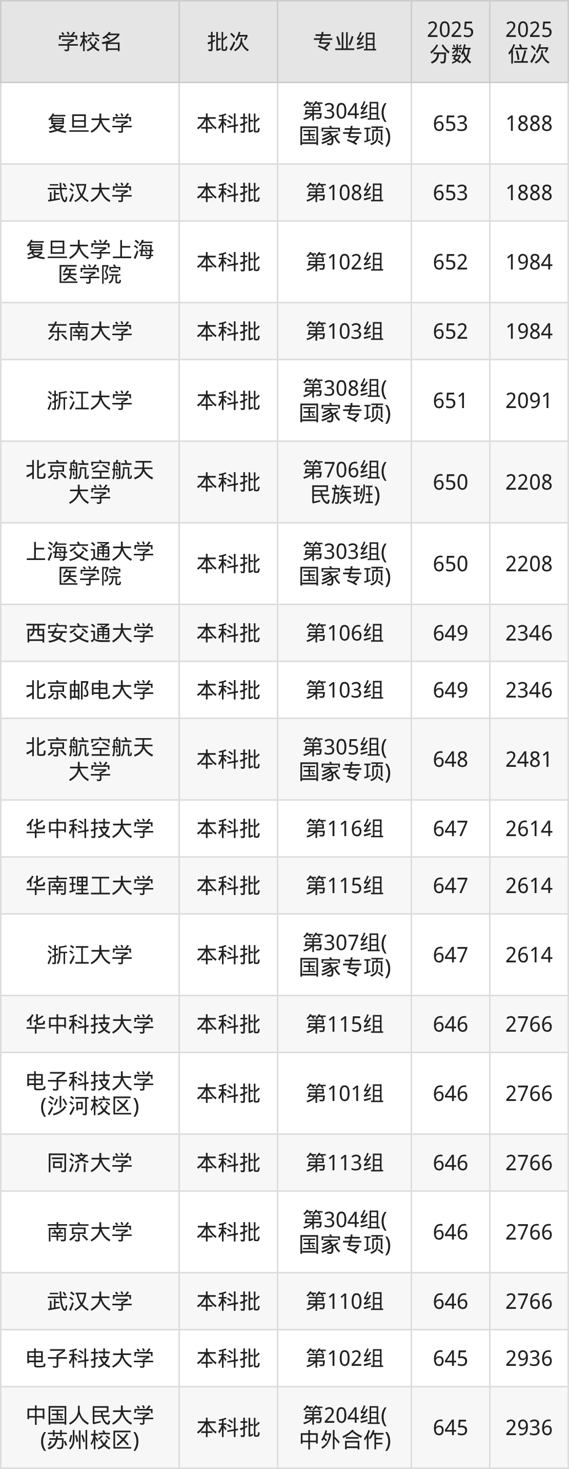 2025年湖南高考历史类648分(122名~128名)能上的大学有复旦大学第303组(国家专项)。