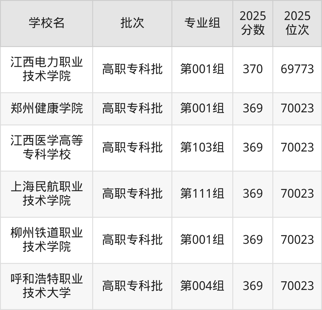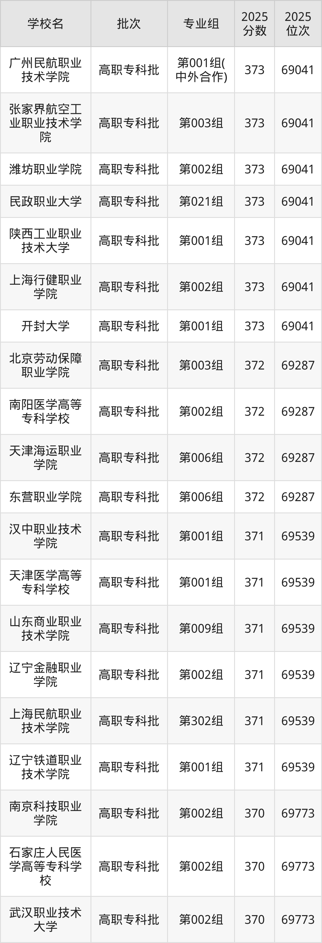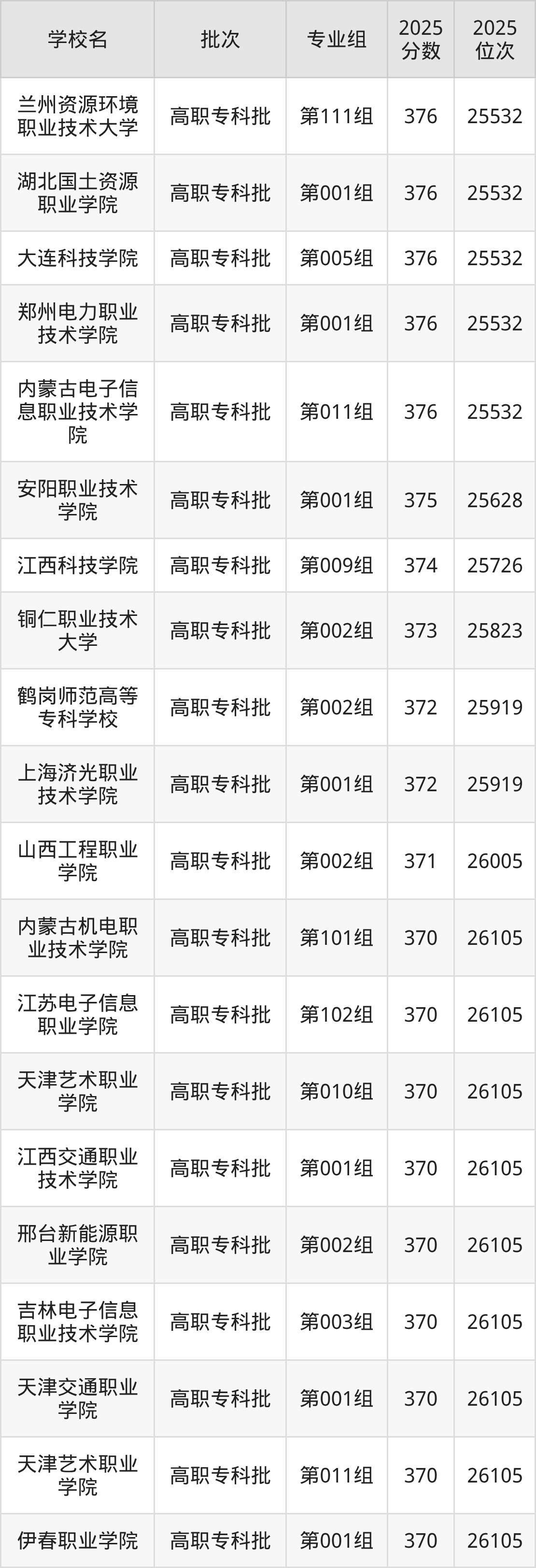 2025年内蒙古高考历史类371分(25920名~26005名)能上的大学有山西工程职业学院第002组。