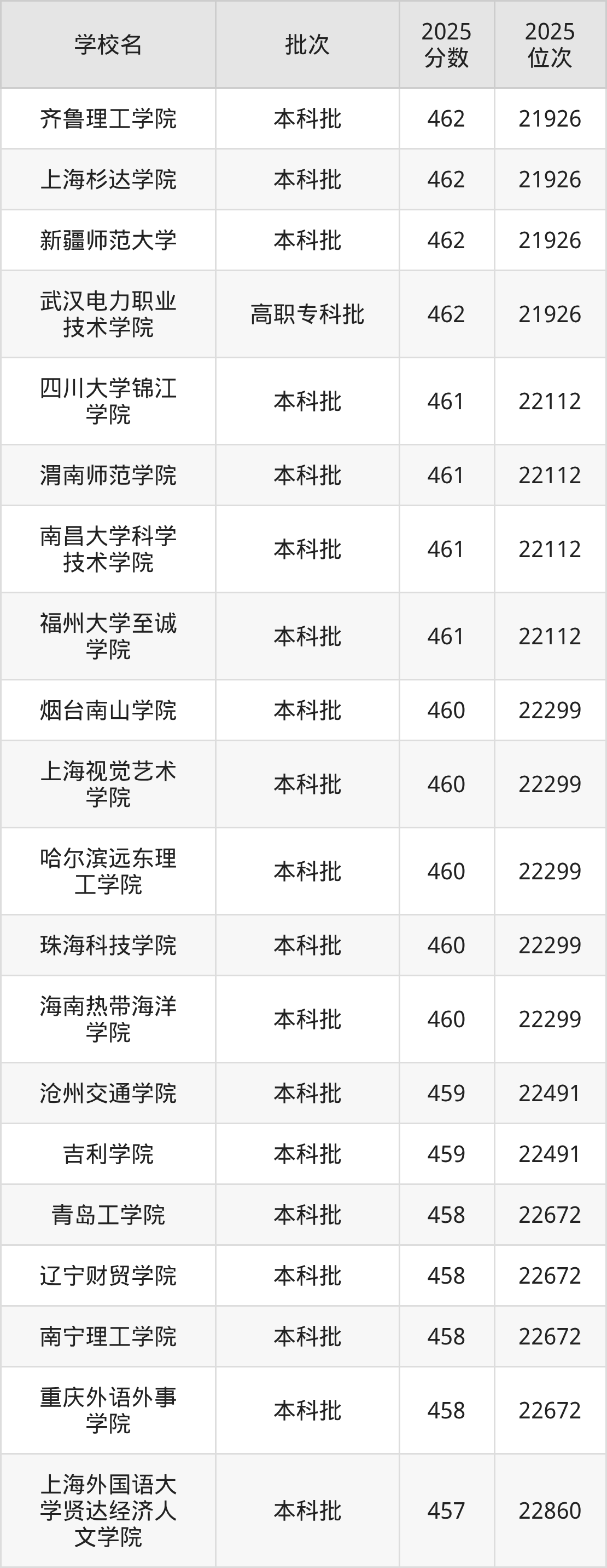 2025年辽宁高考历史类459分(22300名~22491名)能上的大学有沧州交通学院、吉利学院。