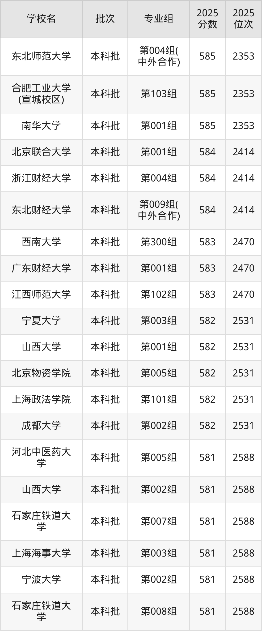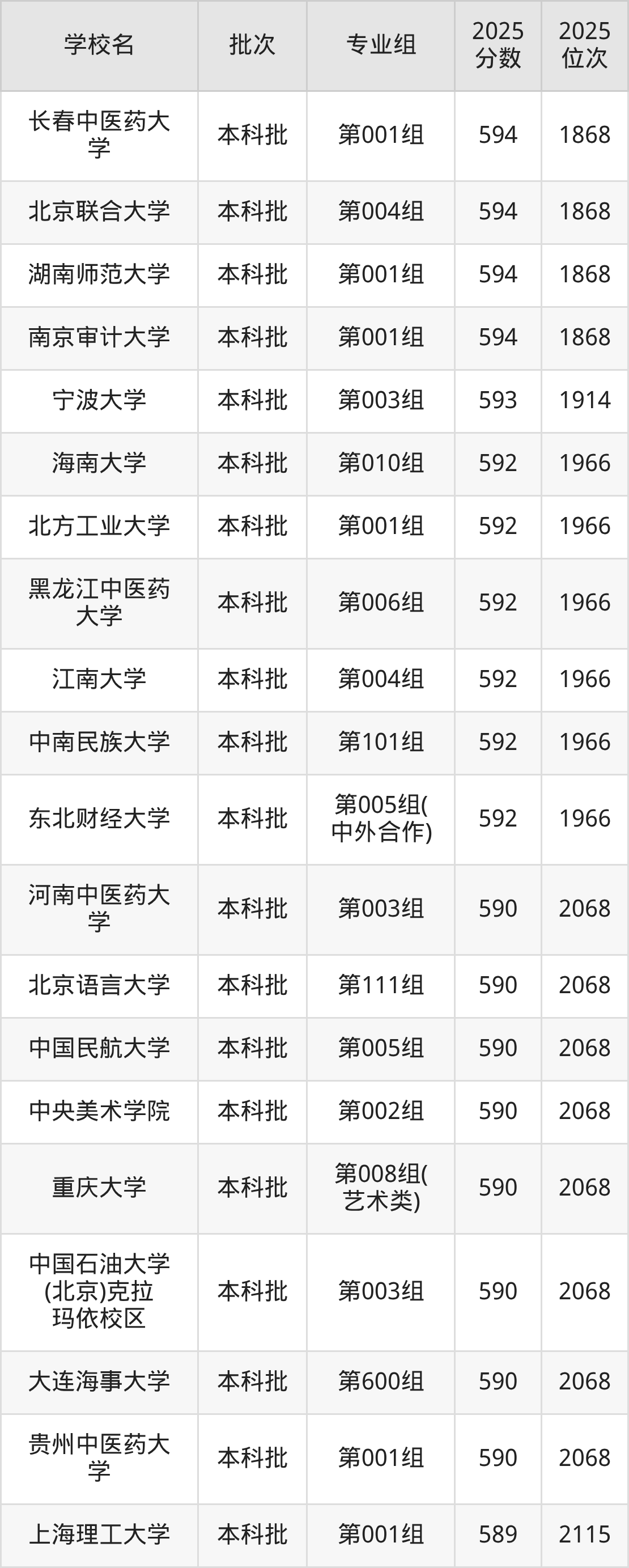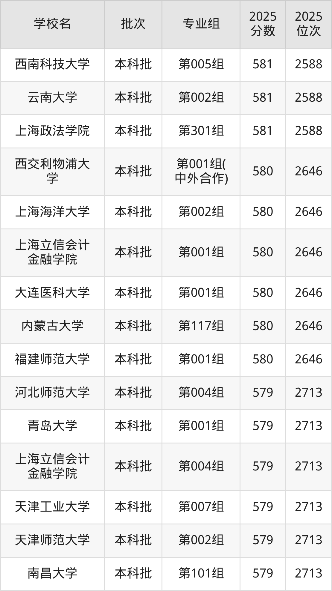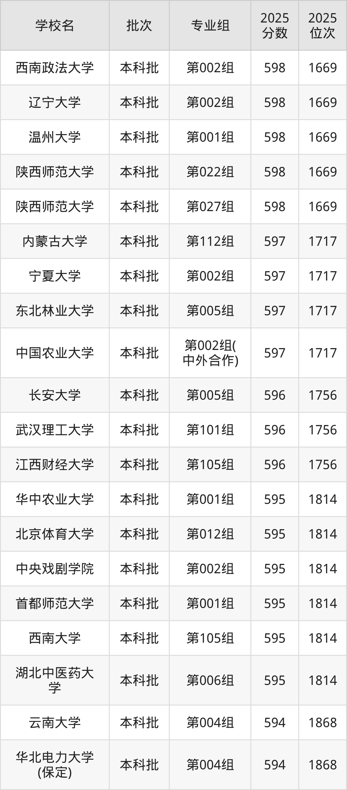 这些都是2026年高考历史类2166名~2225名考生可以报考的大学,更多学校名单如下表所示: