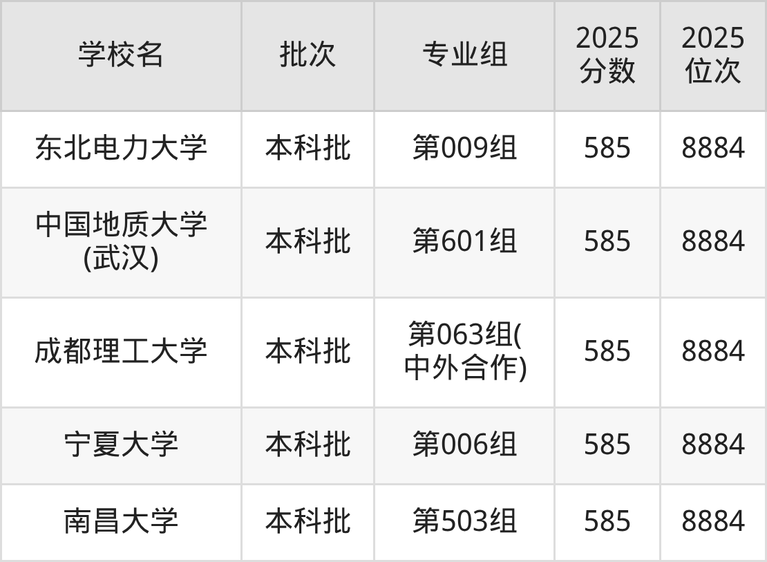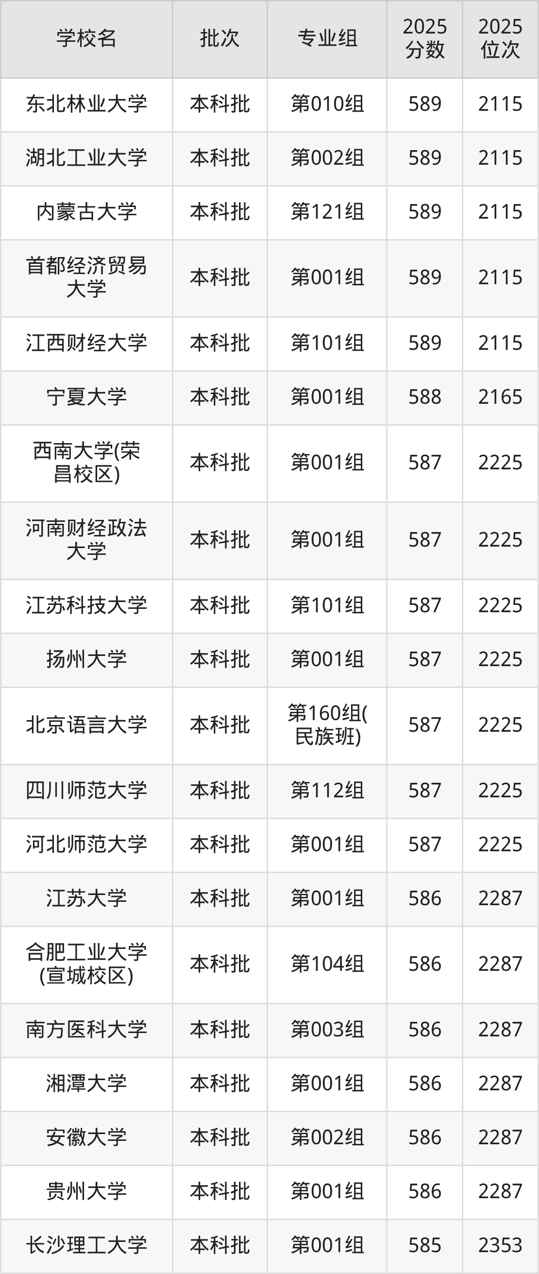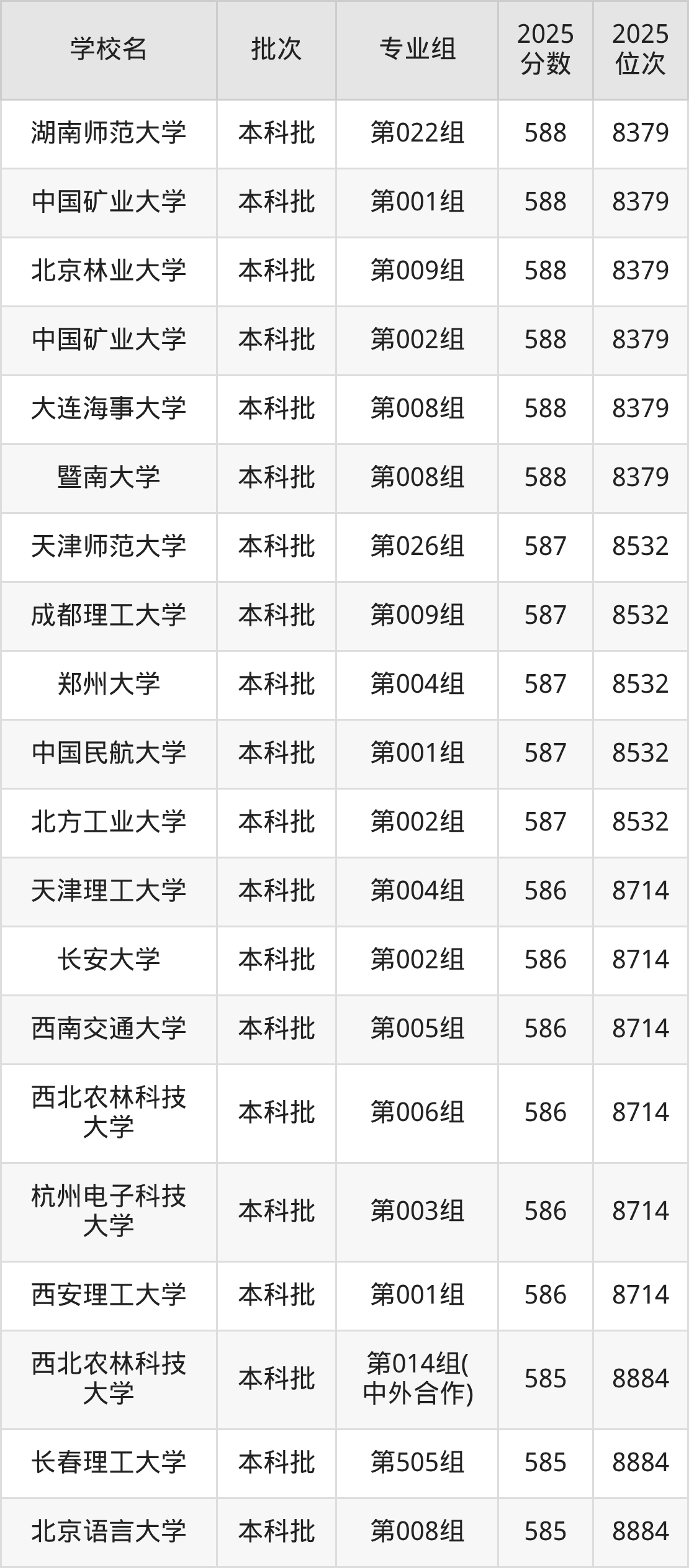 2025年内蒙古高考物理类587分(8380名~8532名)能上的大学有北方工业大学第002组、中国民航大学第001组、郑州大学第004组、成都理工大学第009组等。