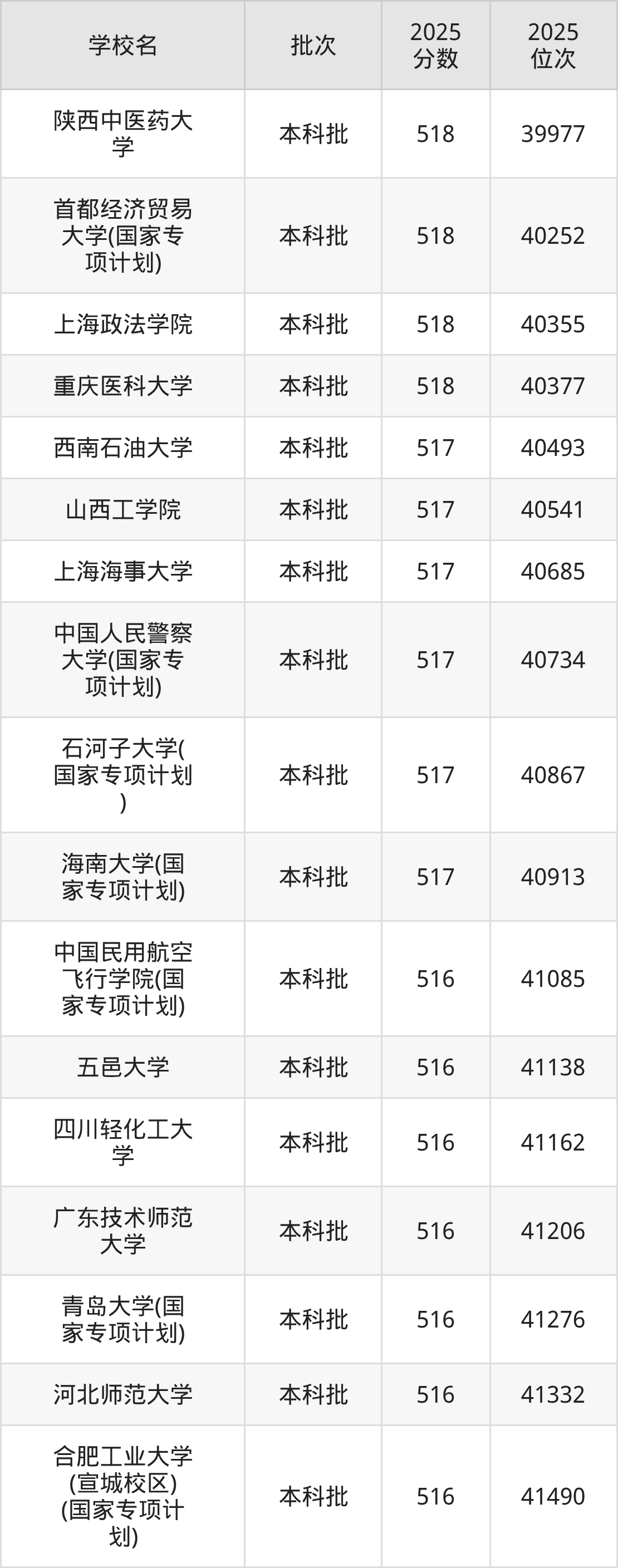 这些都是2026年高考物理类40435名~41036名考生可以报考的大学,更多学校名单如下表所示: