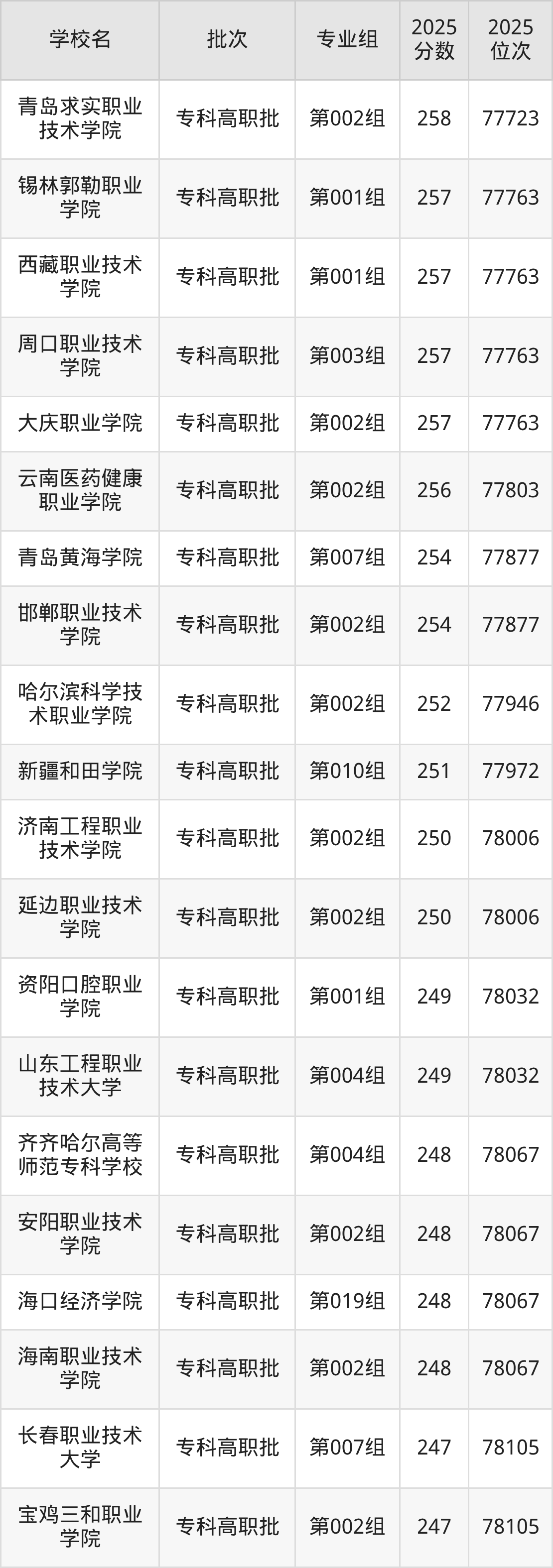 2025年吉林高考物理类258分(77686名~77723名)能上的大学有青岛求实职业技术学院第002组。
