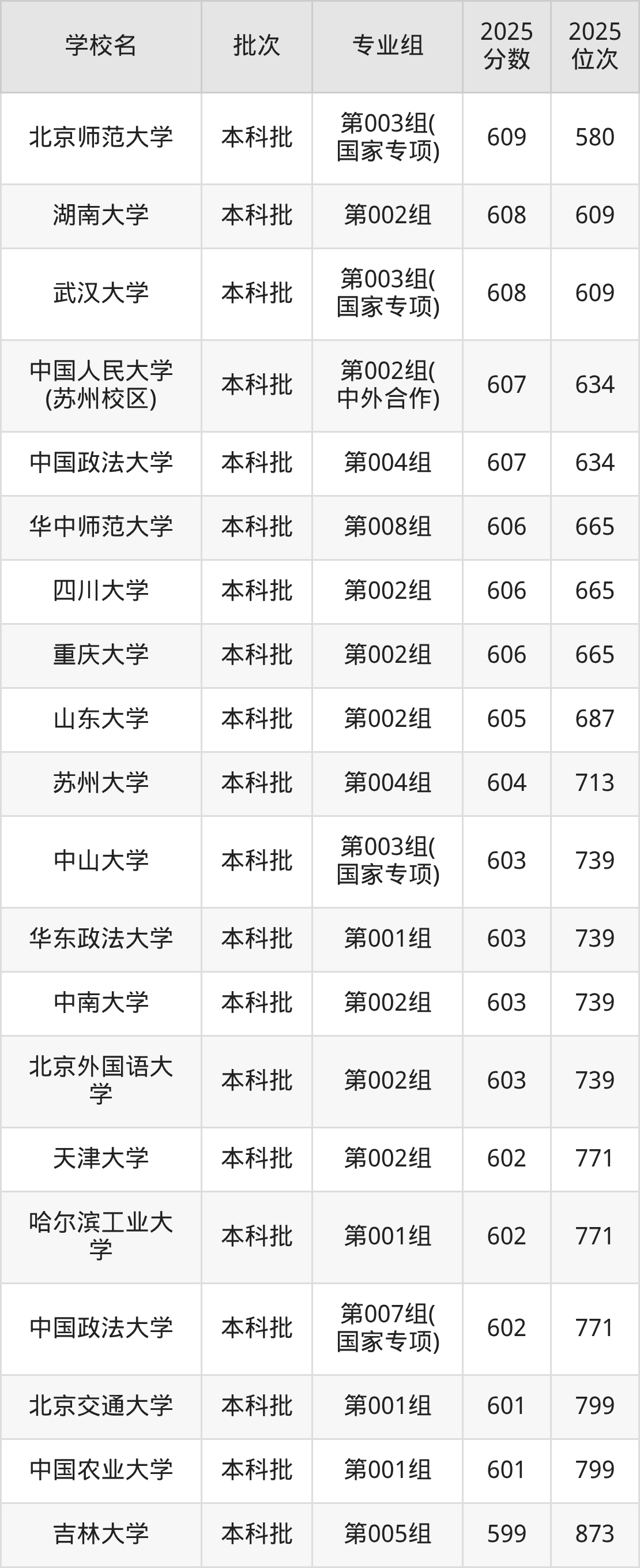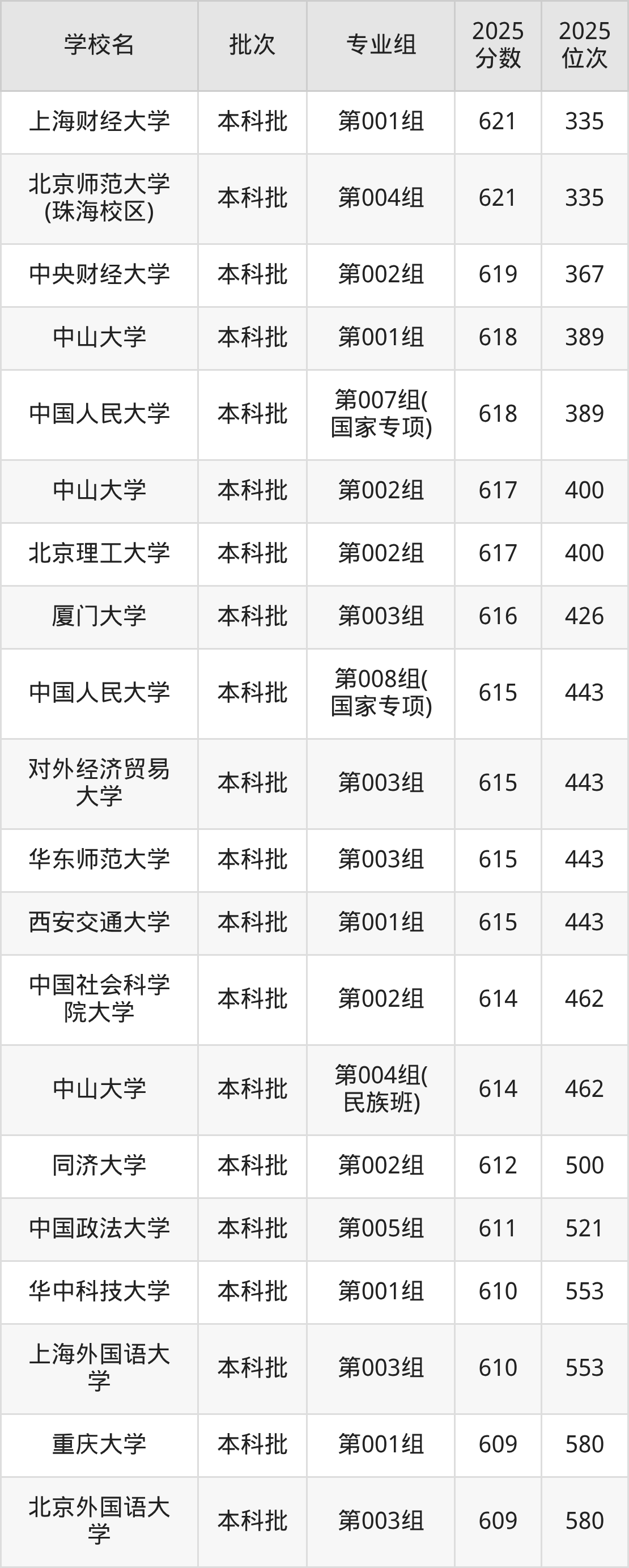 另外录取位次低于该区间(较稳妥)的有重庆大学第001组(580名)、北京外国语大学第003组(580名)等;录取位次高于该区间(可冲)的有中国政法大学第005组(521名)、同济大学第002组(500名)等。