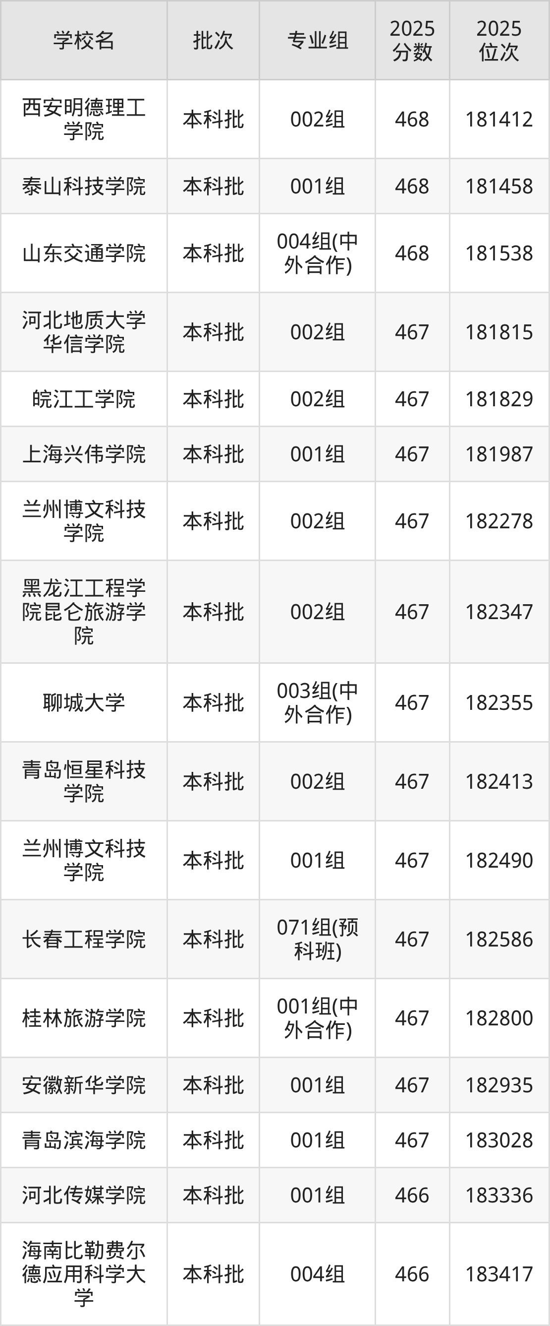2025年安徽高考物理类467分(181797名~183207名)能上的大学有长春工程学院071组(预科班)、桂林旅游学院001组(中外合作)、兰州博文科技学院001组、兰州博文科技学院002组等。