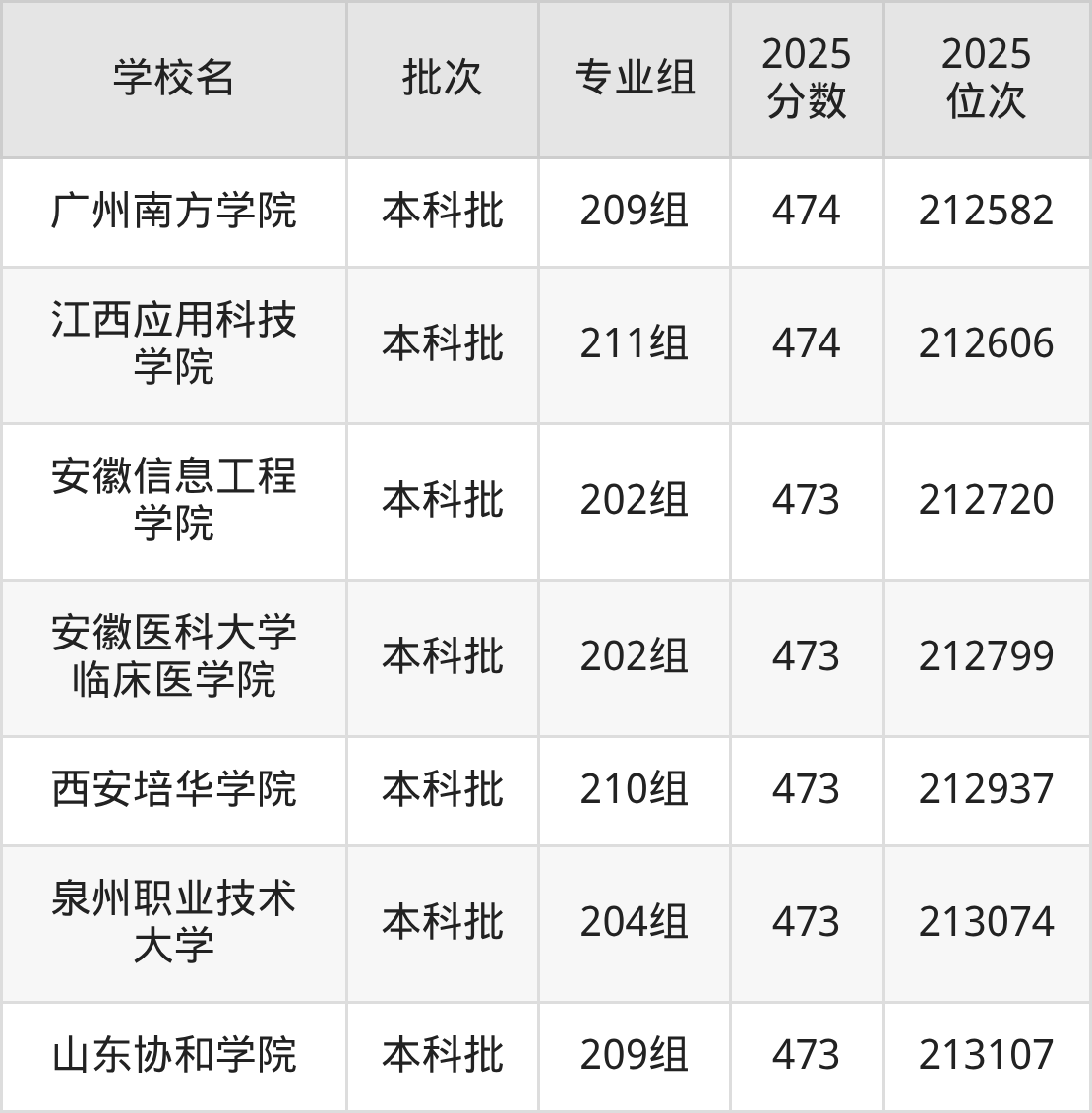 这些都是2026年高考物理类210851名~212626名考生可以报考的大学,更多学校名单如下表所示: