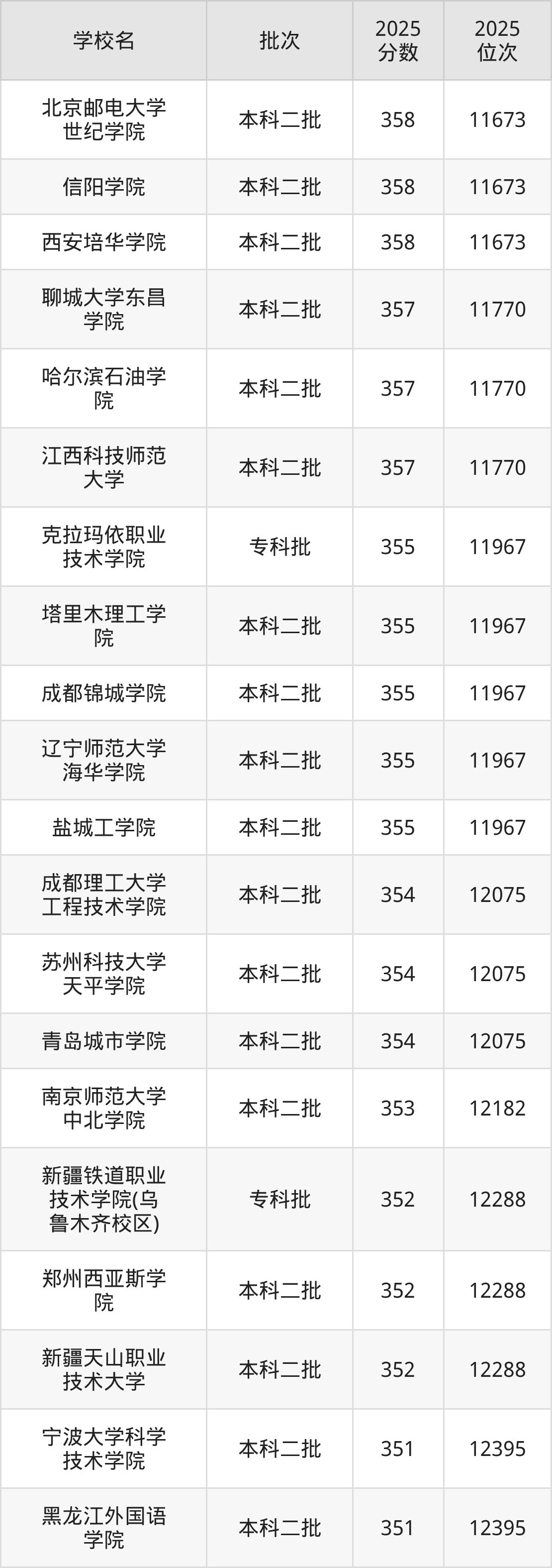 二、新疆353分位次排名能上的大学