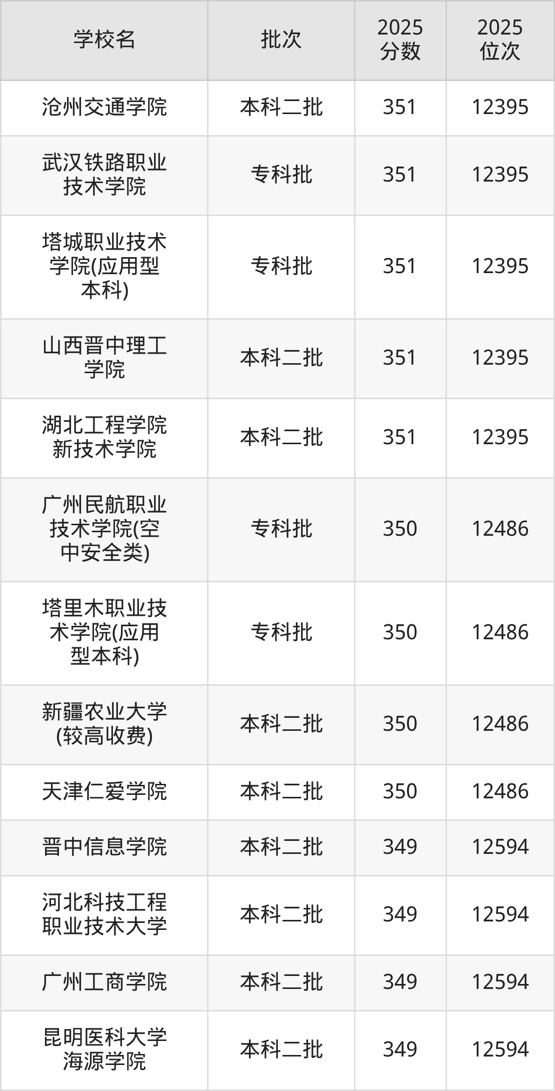 这些都是2026年高考理科30175名~30343名考生可以报考的大学,更多学校名单如下表所示: