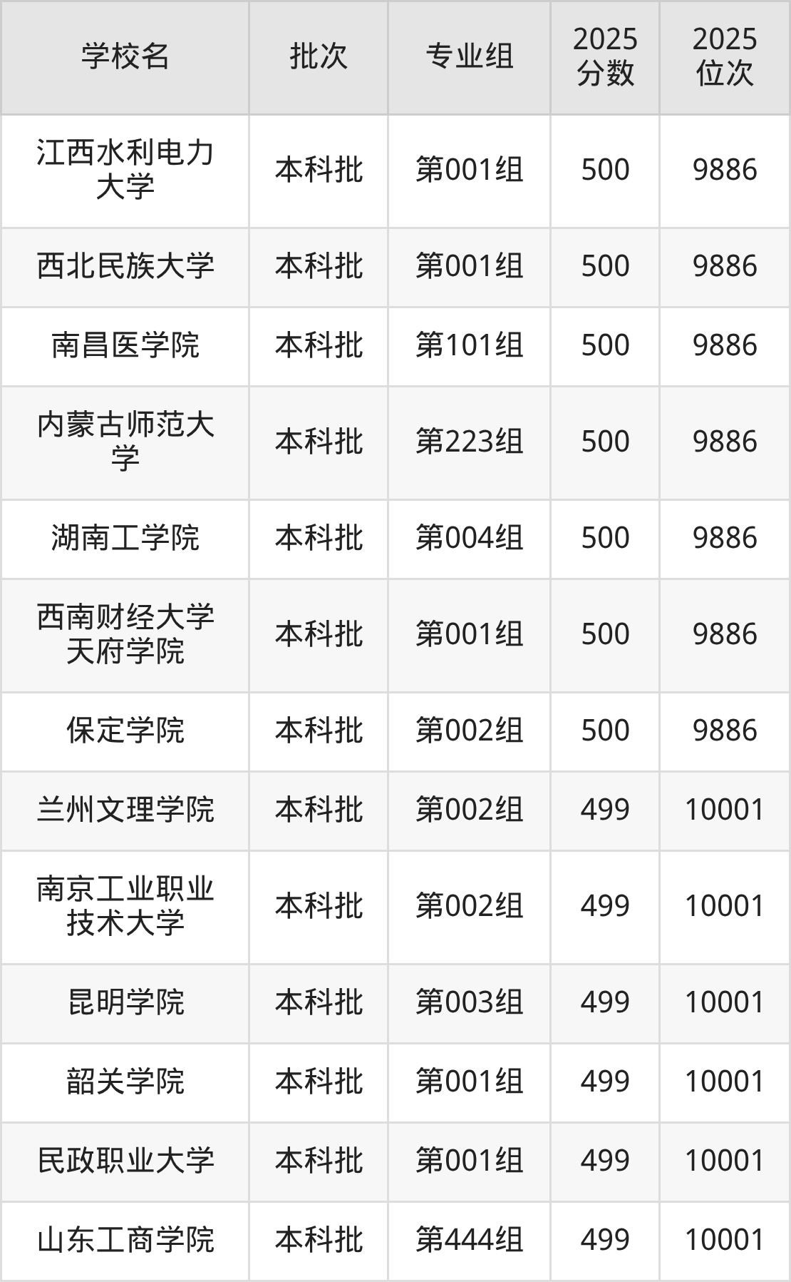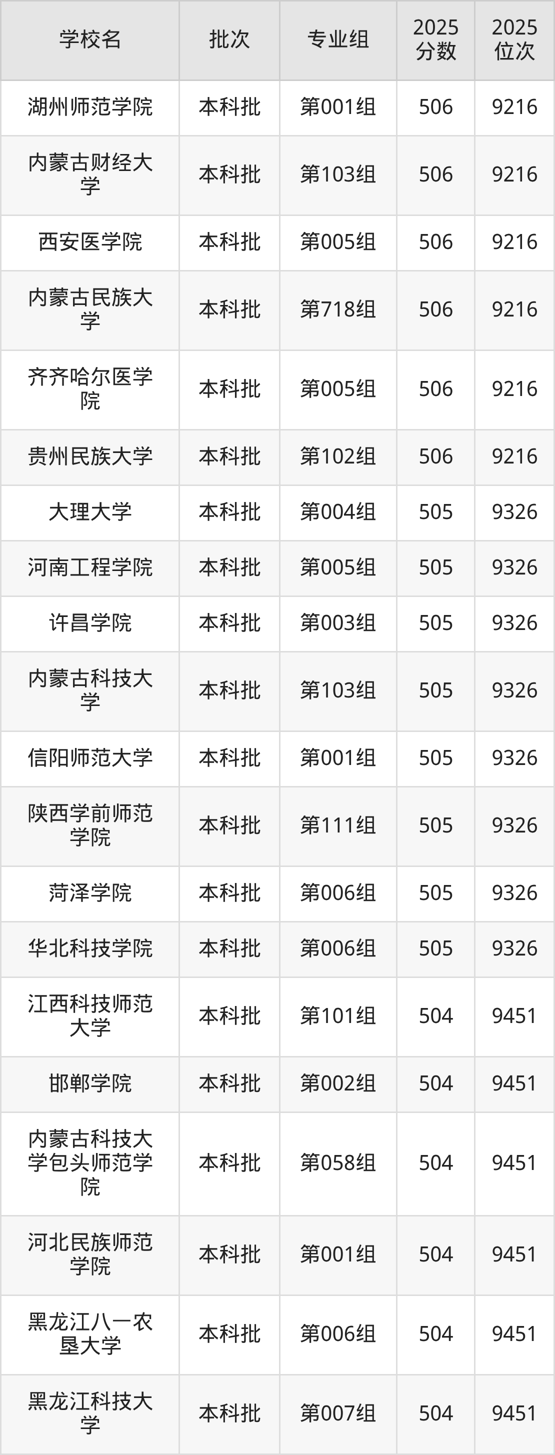 这些都是2026年高考历史类9452名~9554名考生可以报考的大学,更多学校名单如下表所示: