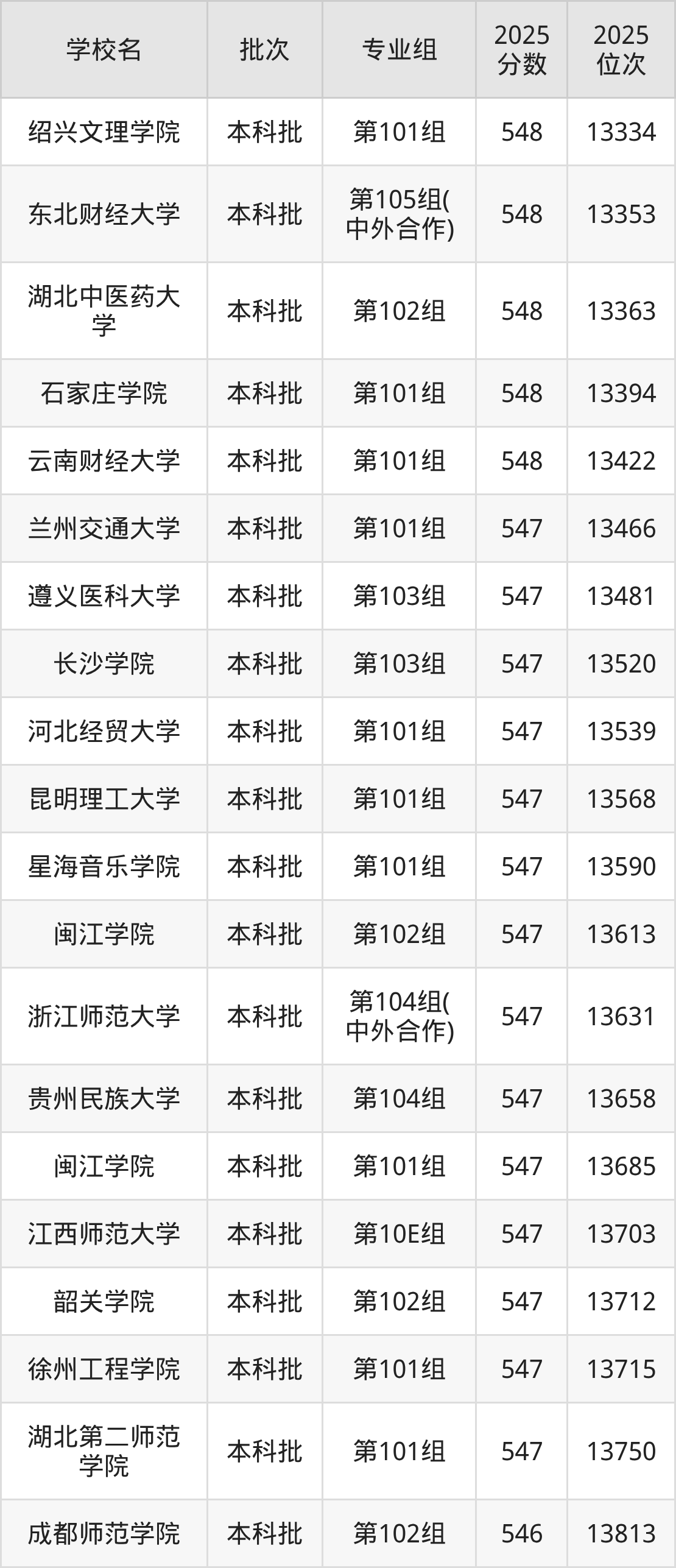 这些都是2026年高考历史类13773名~14132名考生可以报考的大学,更多学校名单如下表所示: