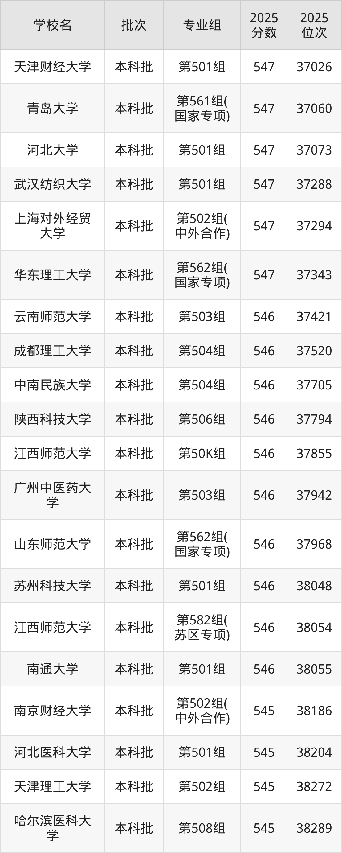 另外录取位次低于该区间(较稳妥)的有南京财经大学第502组(中外合作)(38186名)、河北医科大学第501组(38204名)等;录取位次高于该区间(可冲)的有华东理工大学第562组(国家专项)(37343名)、上海对外经贸大学第502组(中外合作)(37294名)等。