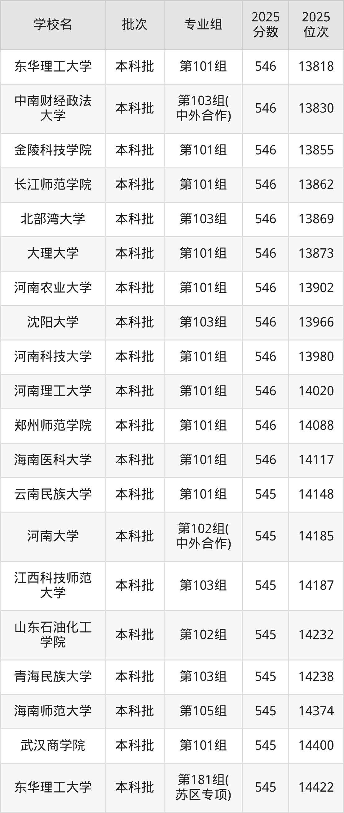 二、江西546分位次排名能上的大学