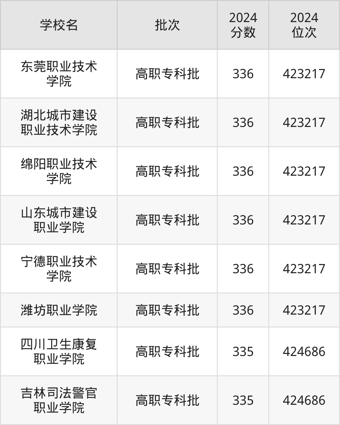 2024年河南高考理科335分(423219名~424687名)能上的大学有吉林司法警官职业学院、四川卫生康复职业学院。
