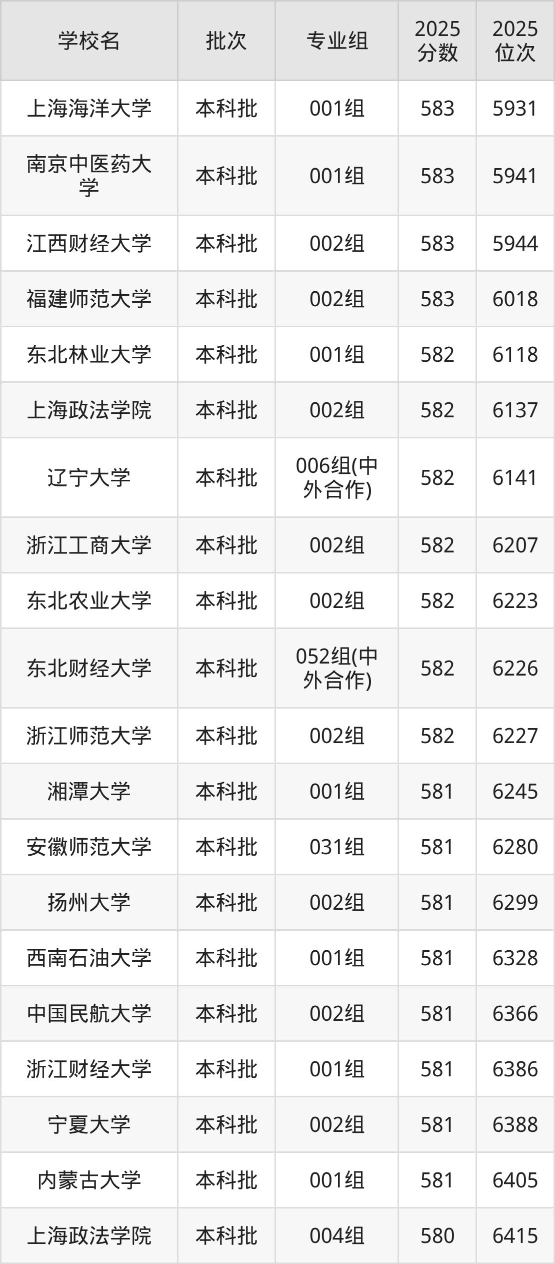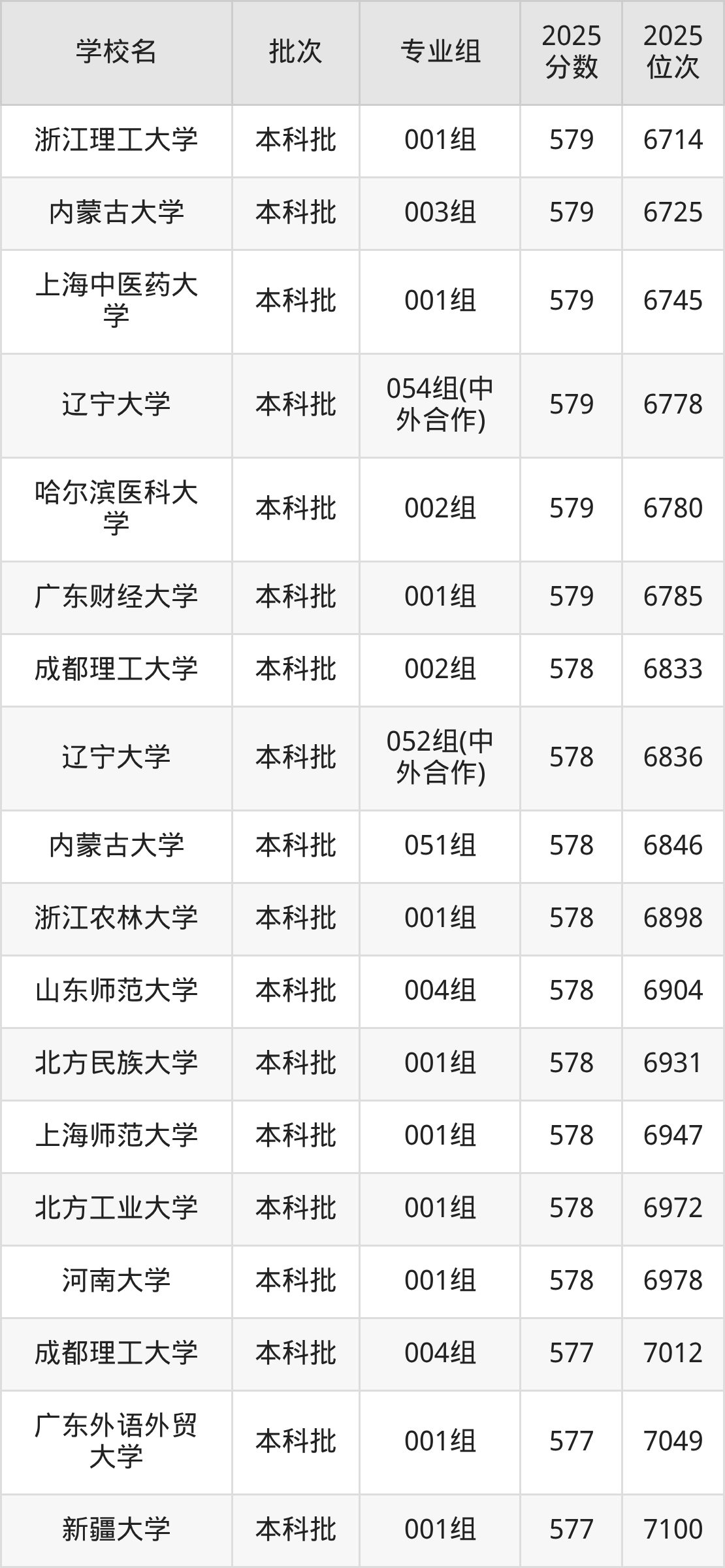 这些都是2026年高考历史类6407名~6603名考生可以报考的大学,更多学校名单如下表所示:
