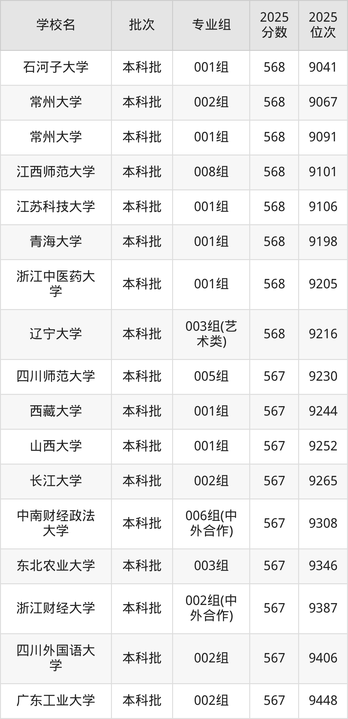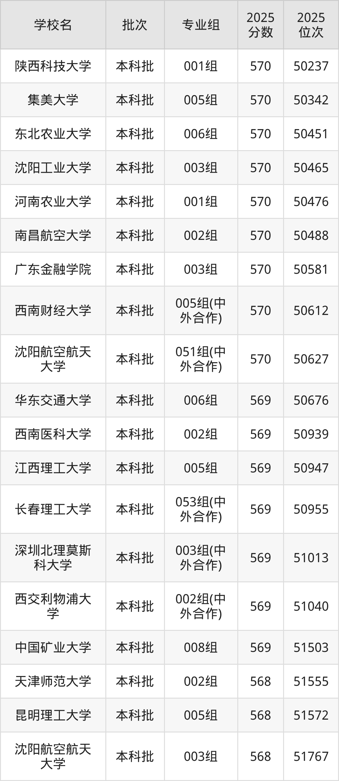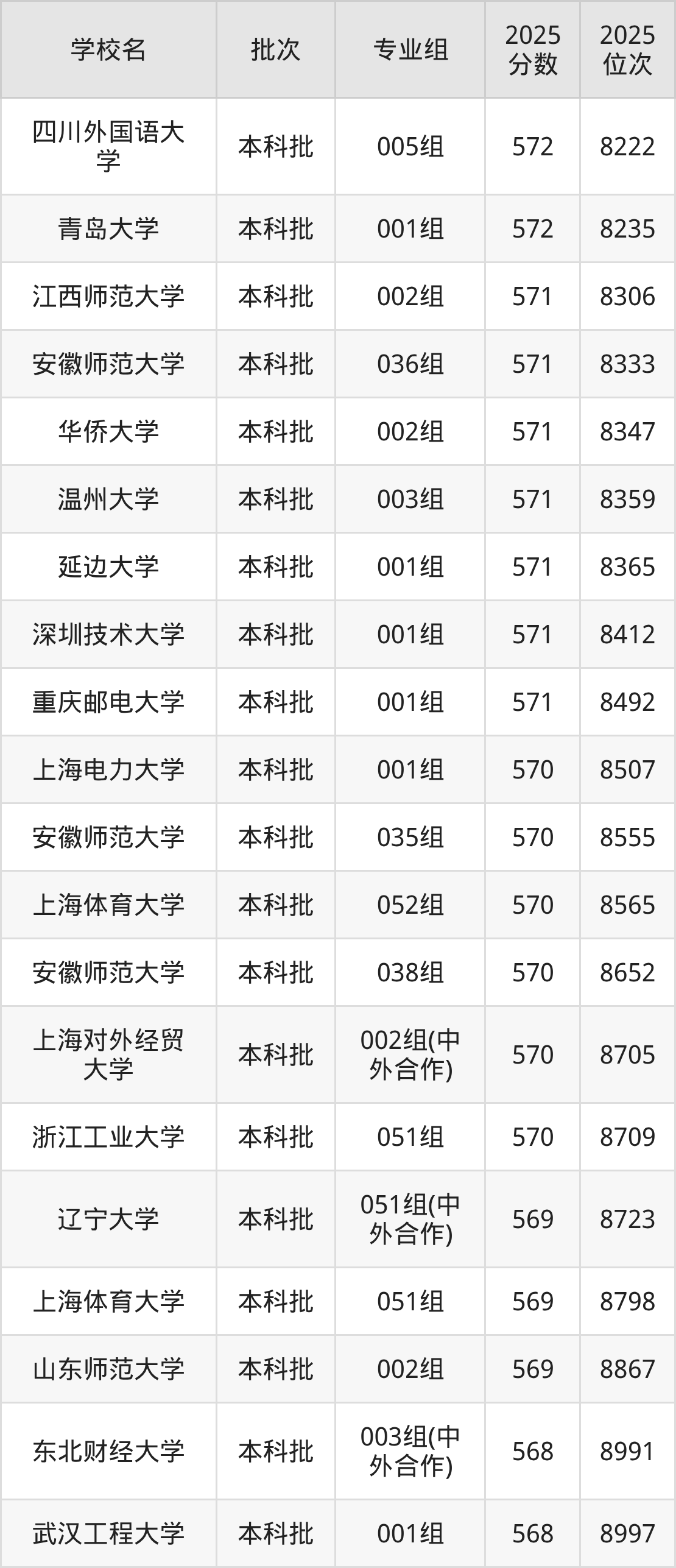 2025年安徽高考物理类569分(50654名~51534名)能上的大学有长春理工大学053组(中外合作)、华东交通大学006组、江西理工大学005组、深圳北理莫斯科大学003组(中外合作)等。
