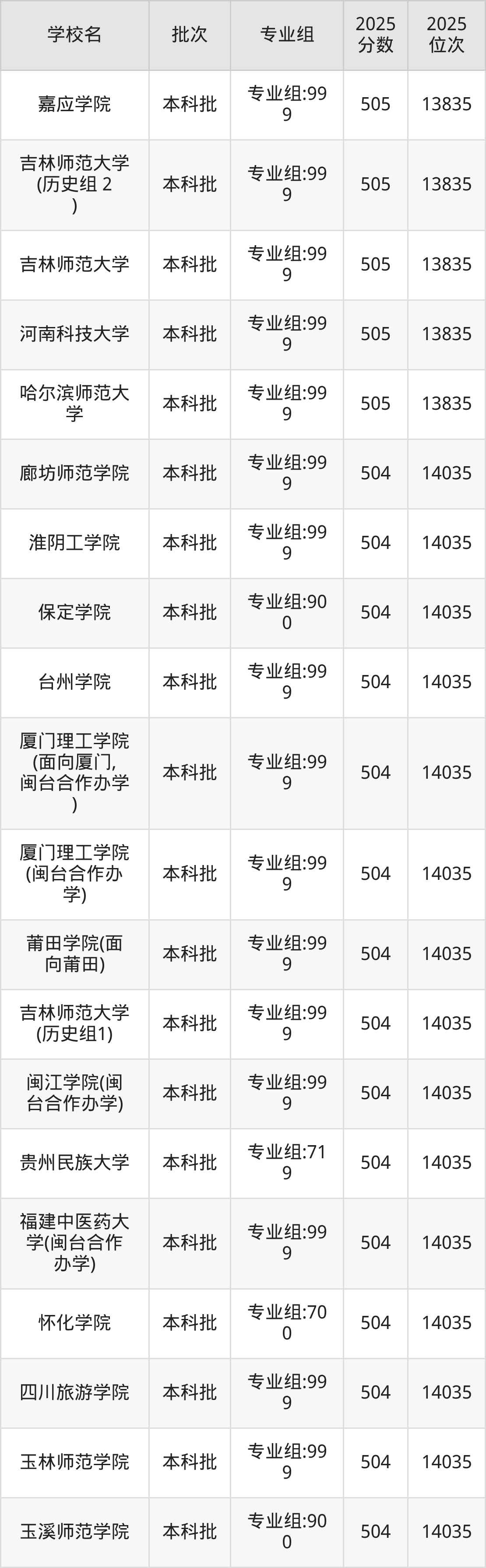 这些都是2026年高考历史类13460名~13640名考生可以报考的大学,更多学校名单如下表所示: