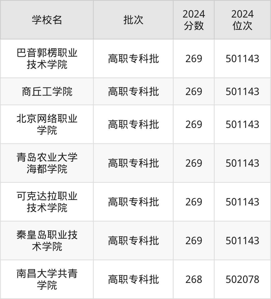 这些都是2025年高考文科282659名~283843名考生可以报考的大学,更多学校名单如下表所示: