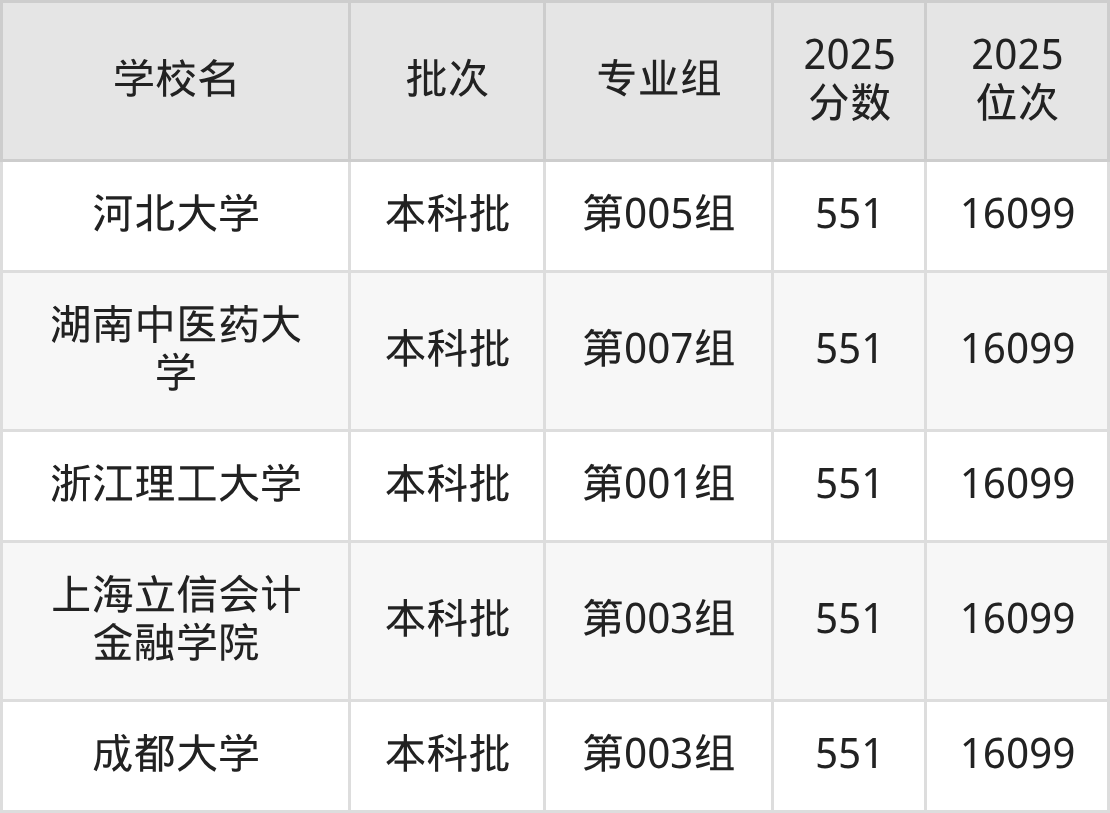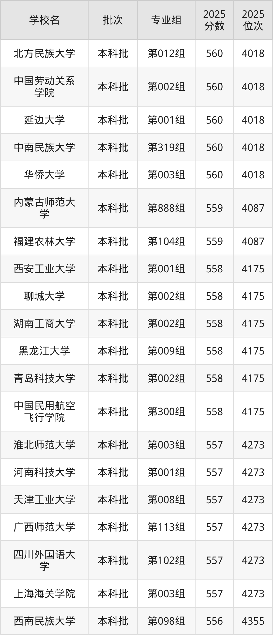 这些都是2026年高考历史类4516名~4584名考生可以报考的大学,更多学校名单如下表所示: