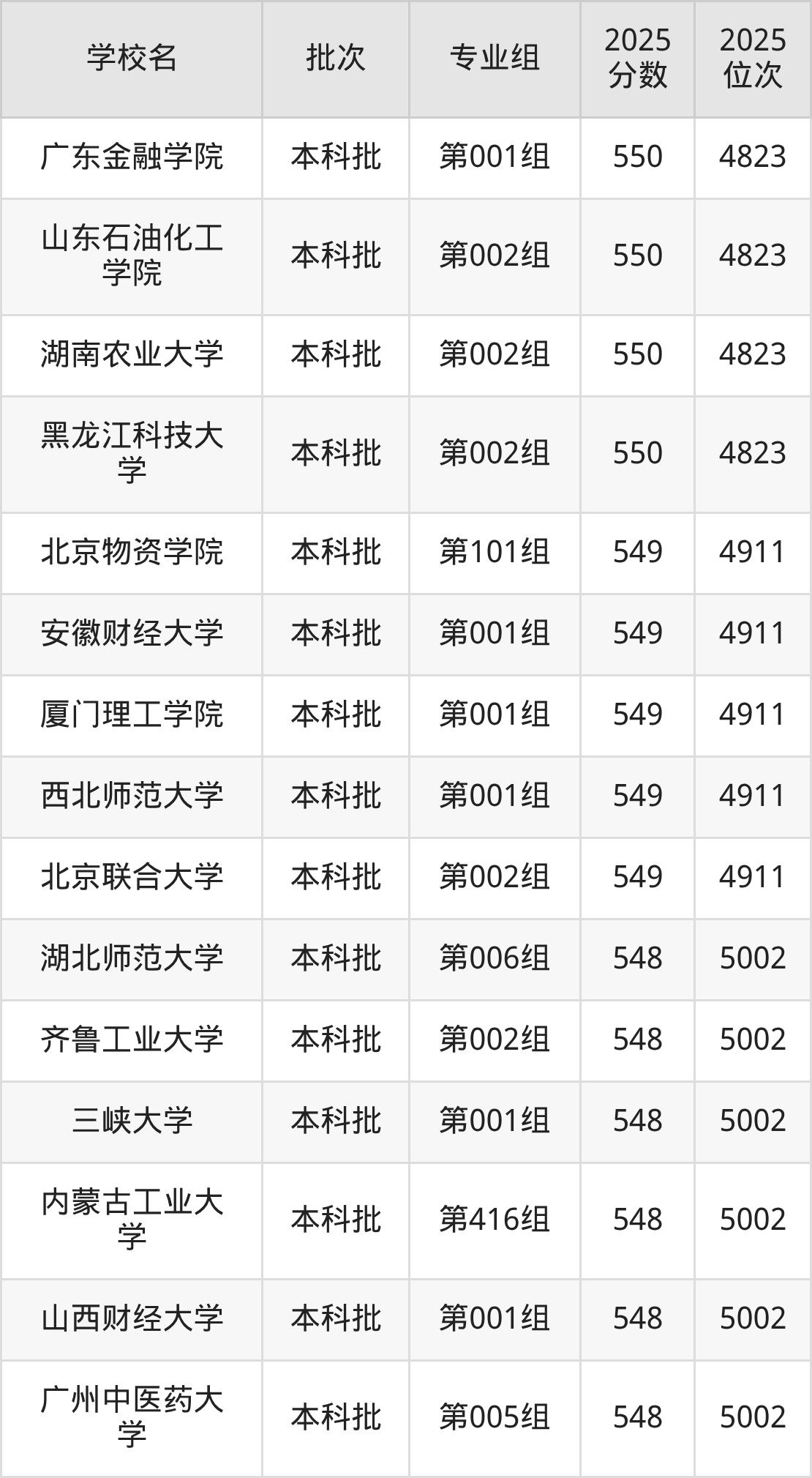 这些都是2026年高考物理类15394名~15607名考生可以报考的大学,更多学校名单如下表所示: