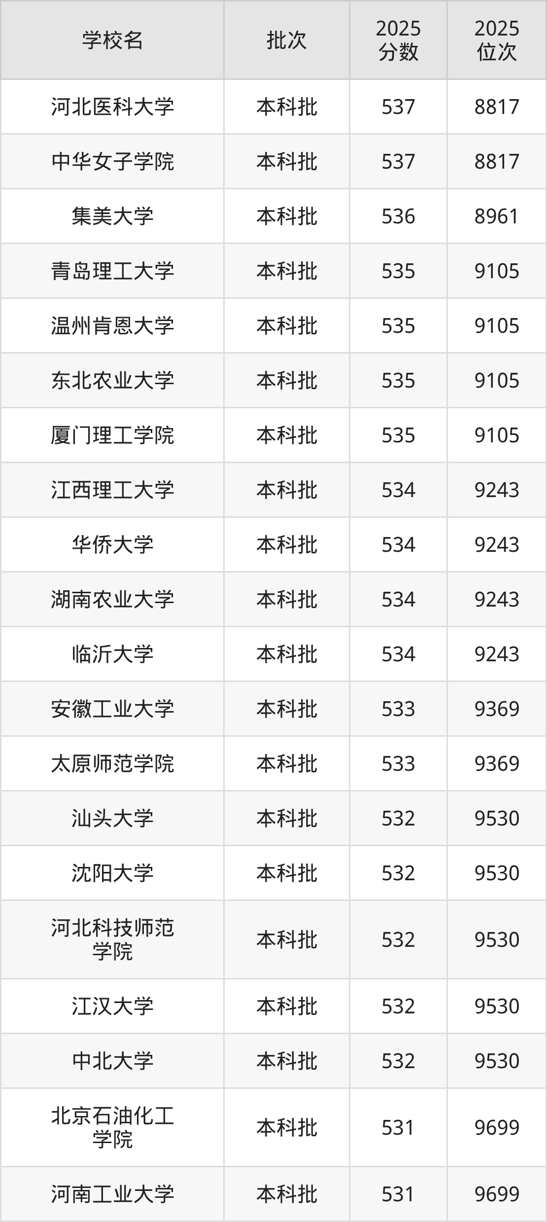 另外录取位次低于该区间(较稳妥)的有中北大学(9530名)、汕头大学(9530名)等;录取位次高于该区间(可冲)的有湖南农业大学(9243名)、华侨大学(9243名)等。