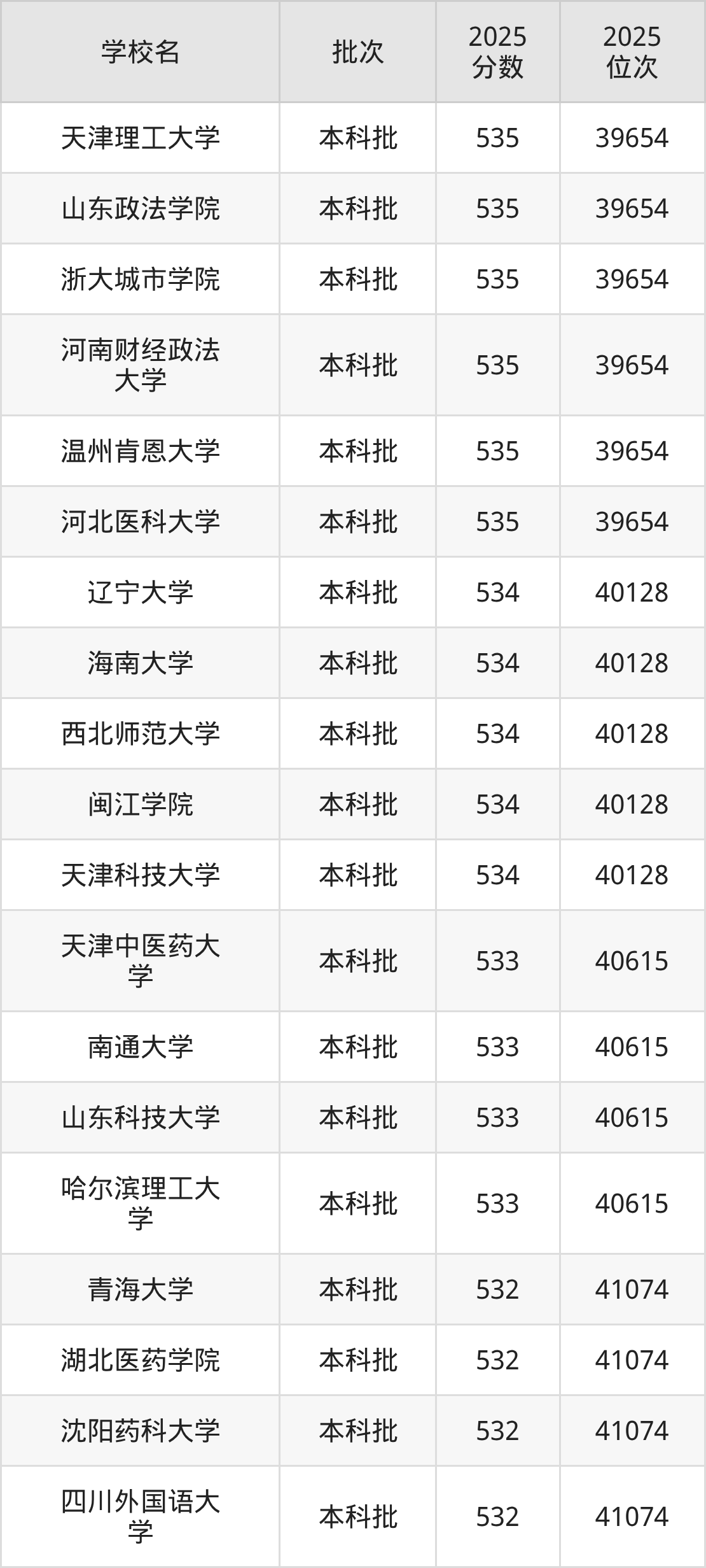 2025年辽宁高考物理类533分(40129名~40615名)能上的大学有南通大学、天津中医药大学、哈尔滨理工大学、山东科技大学。